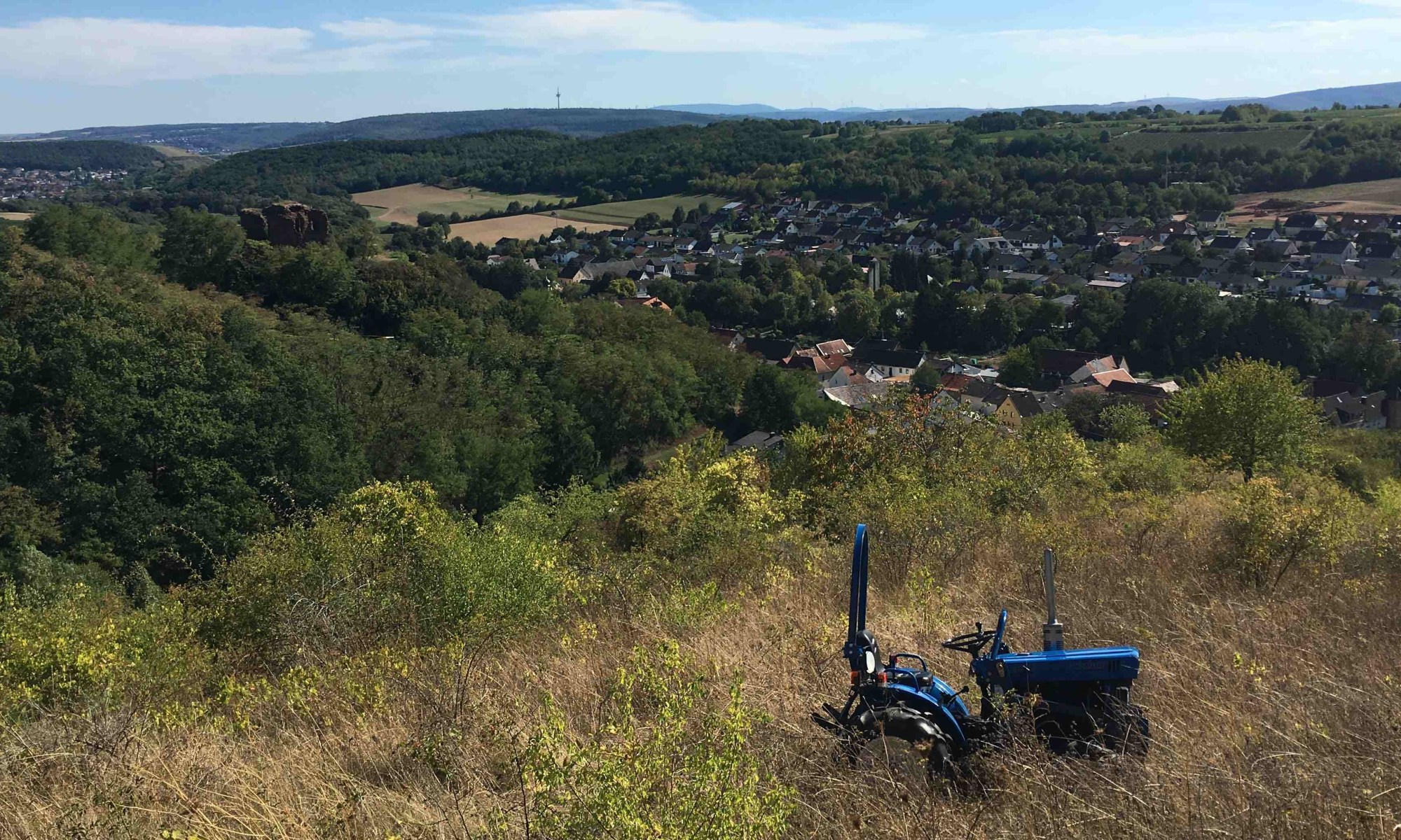 2018-09-29: Dem grünen Freund, der mittlerweile nur noch braun ist, wurde heute ein blauer zur Seite gestellt. Baumnummer wurde vererbt, da der vormals Grüne nun da er braun wurde, ja irgendwie nach Zersetzung über den Kreislauf allen Vergänglichen im Blauen quasi eingebaut wird.