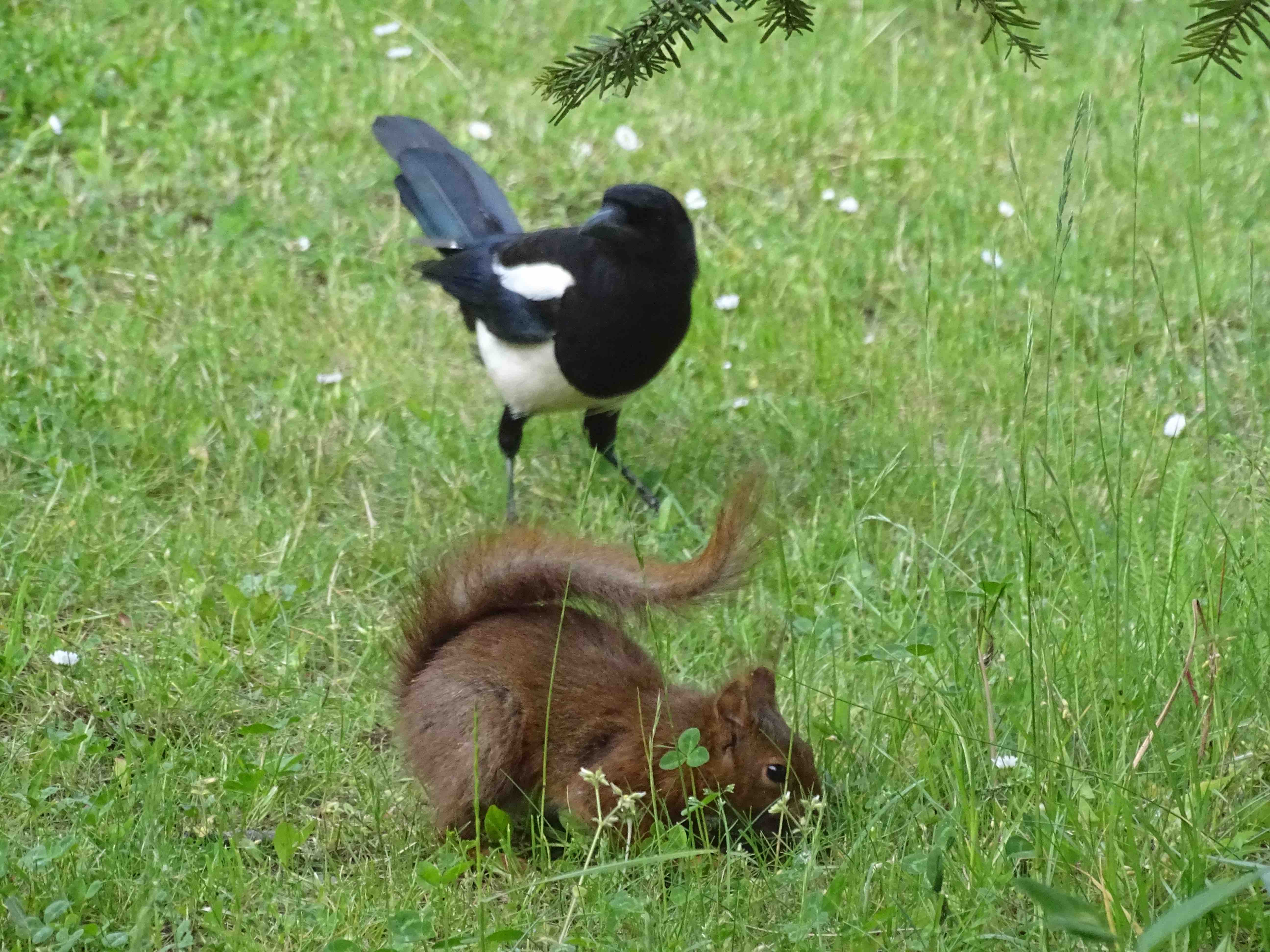 Und neugierige Elstern schauen, ob sie einem alten Eichhorn mit schütterem Schwanzhaar vielleicht noch etwas wegstibitzen können: