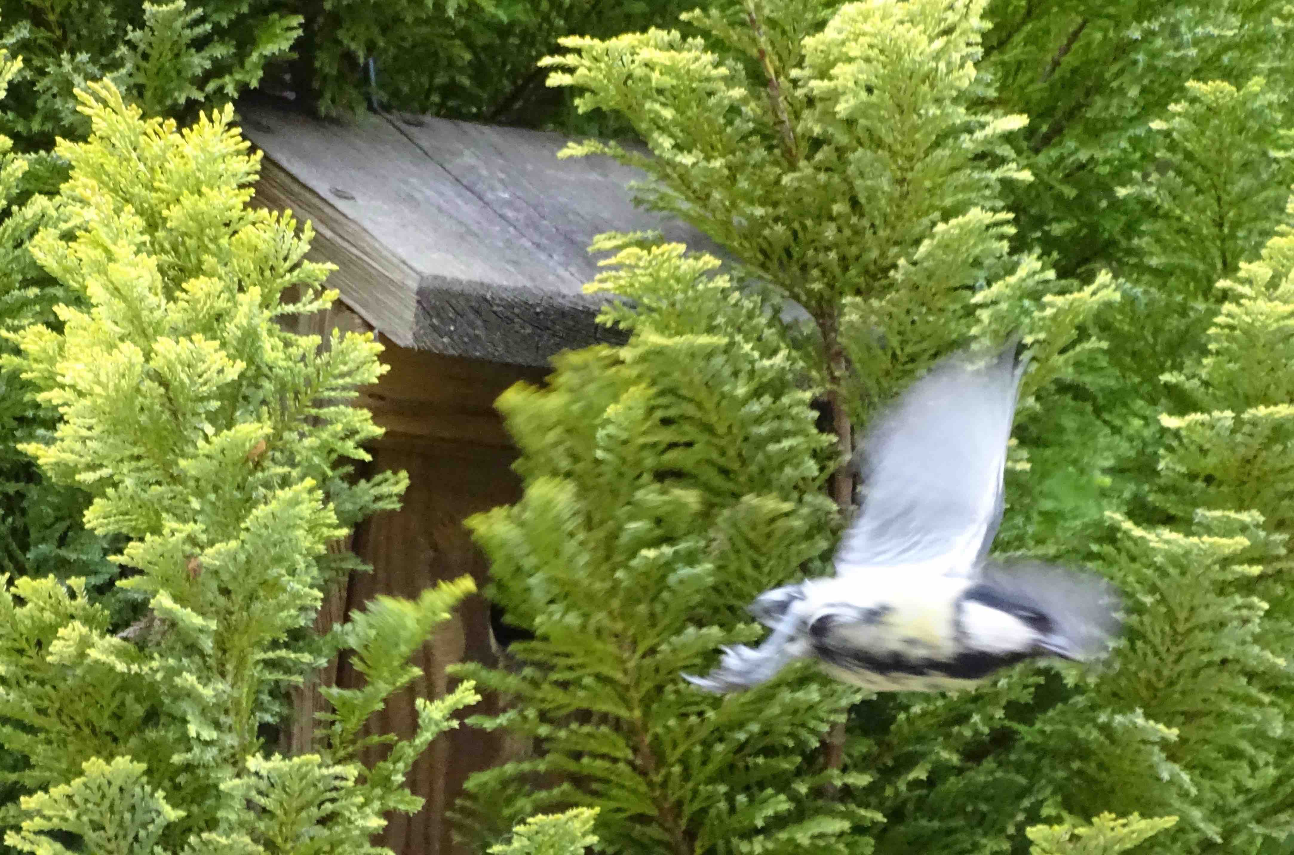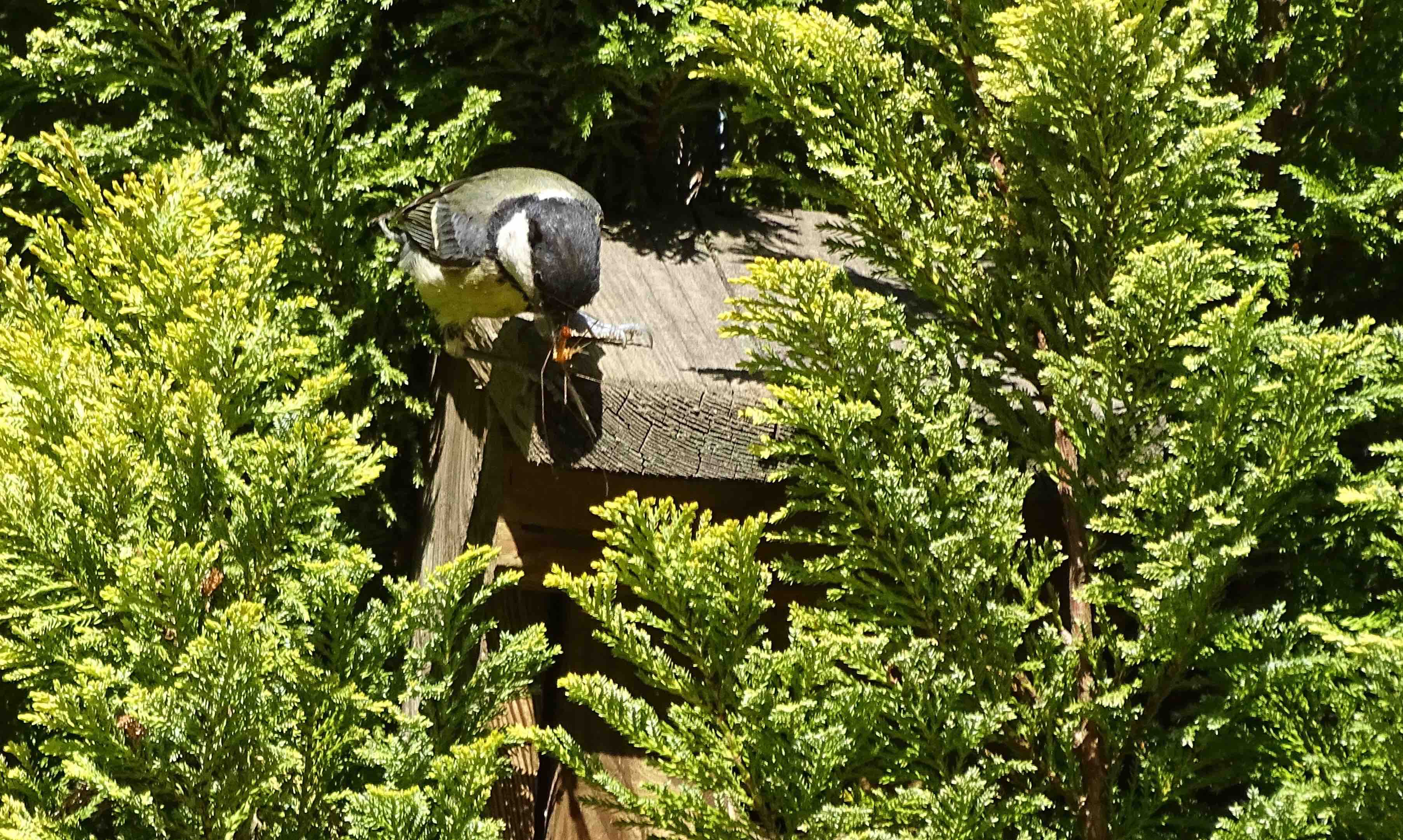 2019-05-29: Auch hier sind die Nisthilfen gut besucht, die Kohlmeisen haben alle Schnäbel voll zu tun, die Schreihälse satt zu kriegen:
