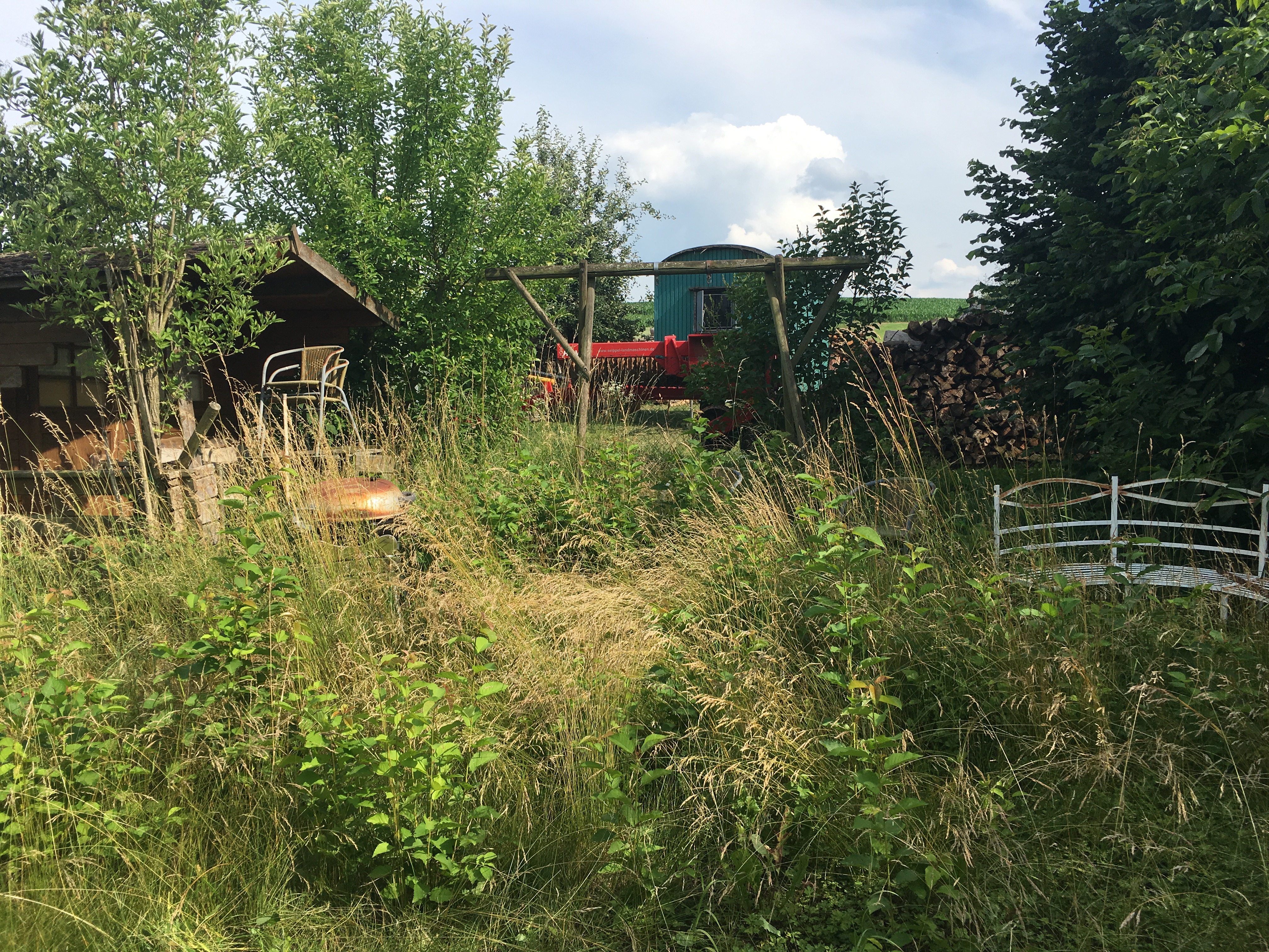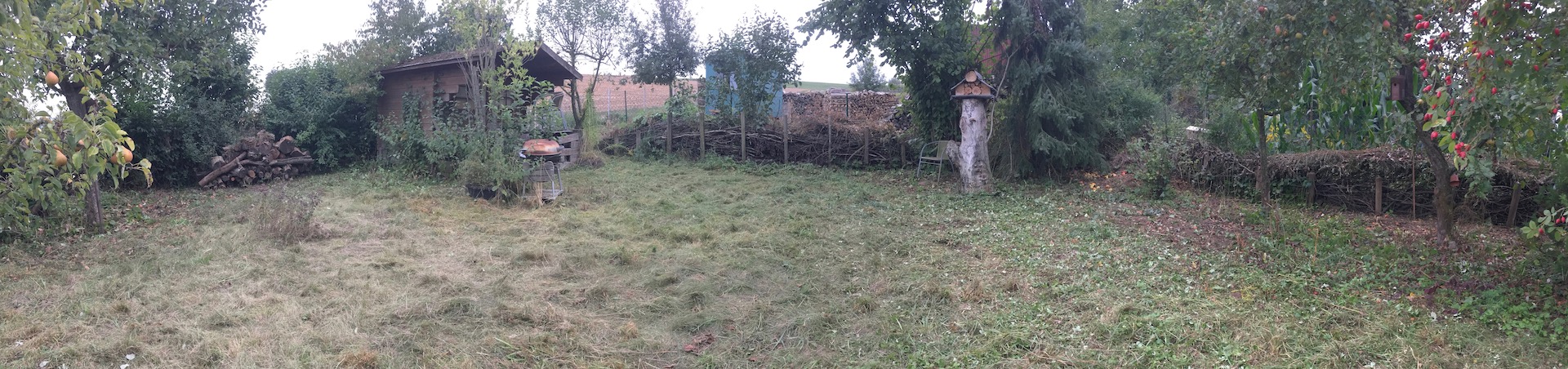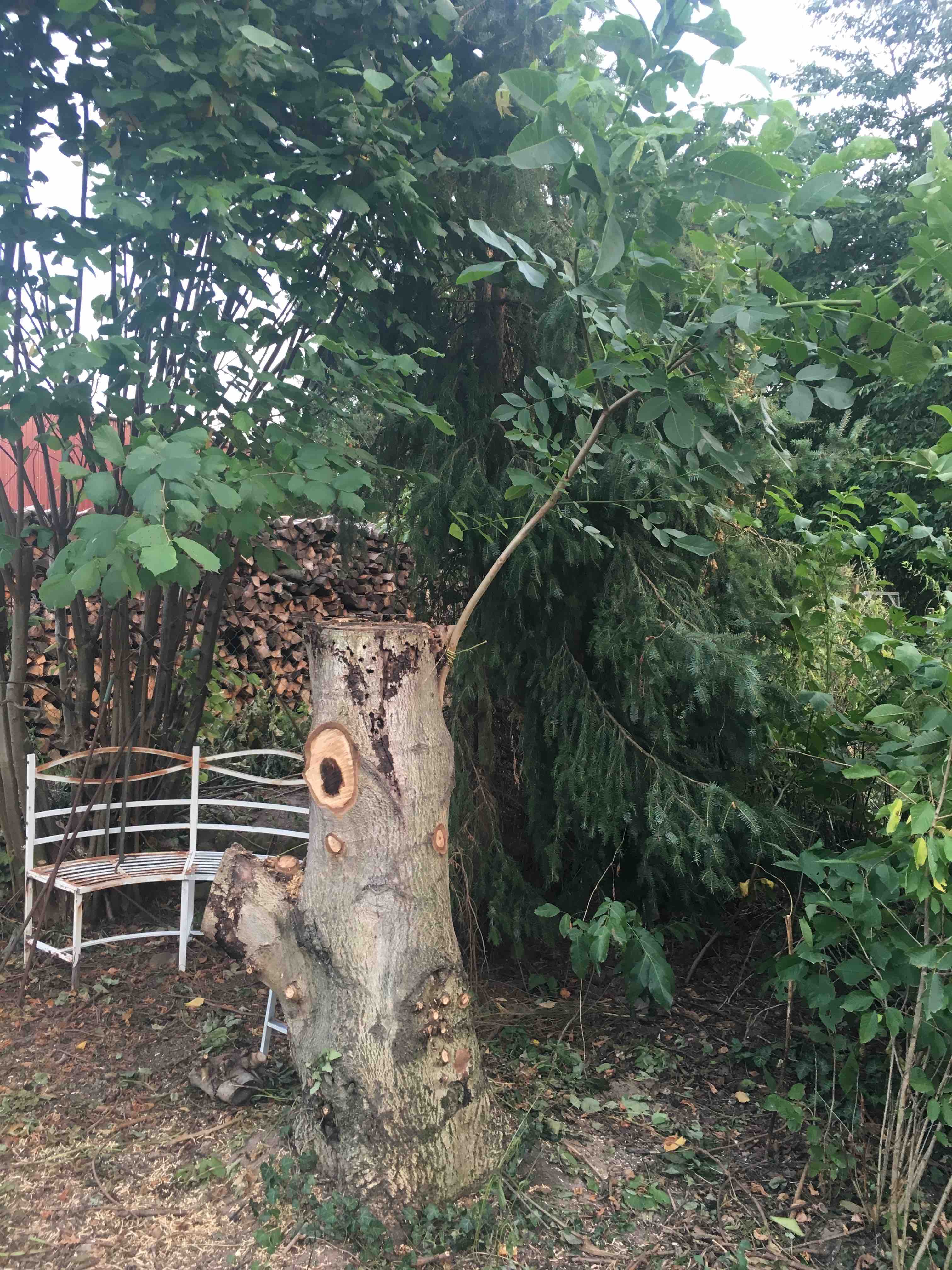Walnussstumpf und Naturzaun nehmen Formen an, wenn auch noch keine sehr schönen… aber das wird schon 😉