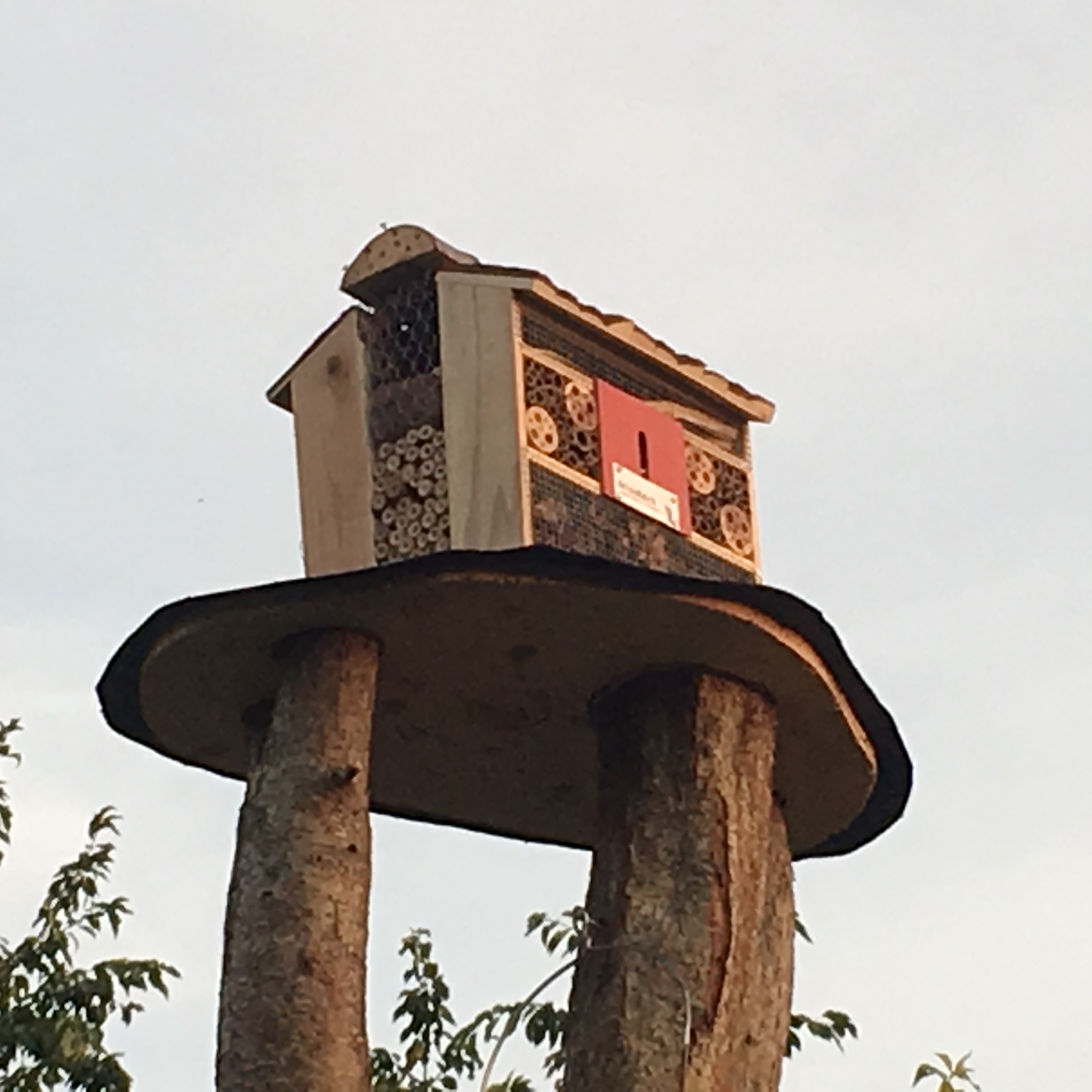 Auch ansonsten ist in dieser Zeit einiges im Projekt passiert: Erste Bruterfolge in den Nistkästen, das Insektenparadies „Zum Walnussstumpf“ wurde fertiggestellt und bezogen, der angelegte Blühstreifen konnte sich zumindest teilweise gegen den Giersch durchsetzen – die Walderdbeeren hatten da weniger Probleme sich durchzusetzen – das Grillhotel wird weiterhin von den friedlichen Wespen gut angenommen…