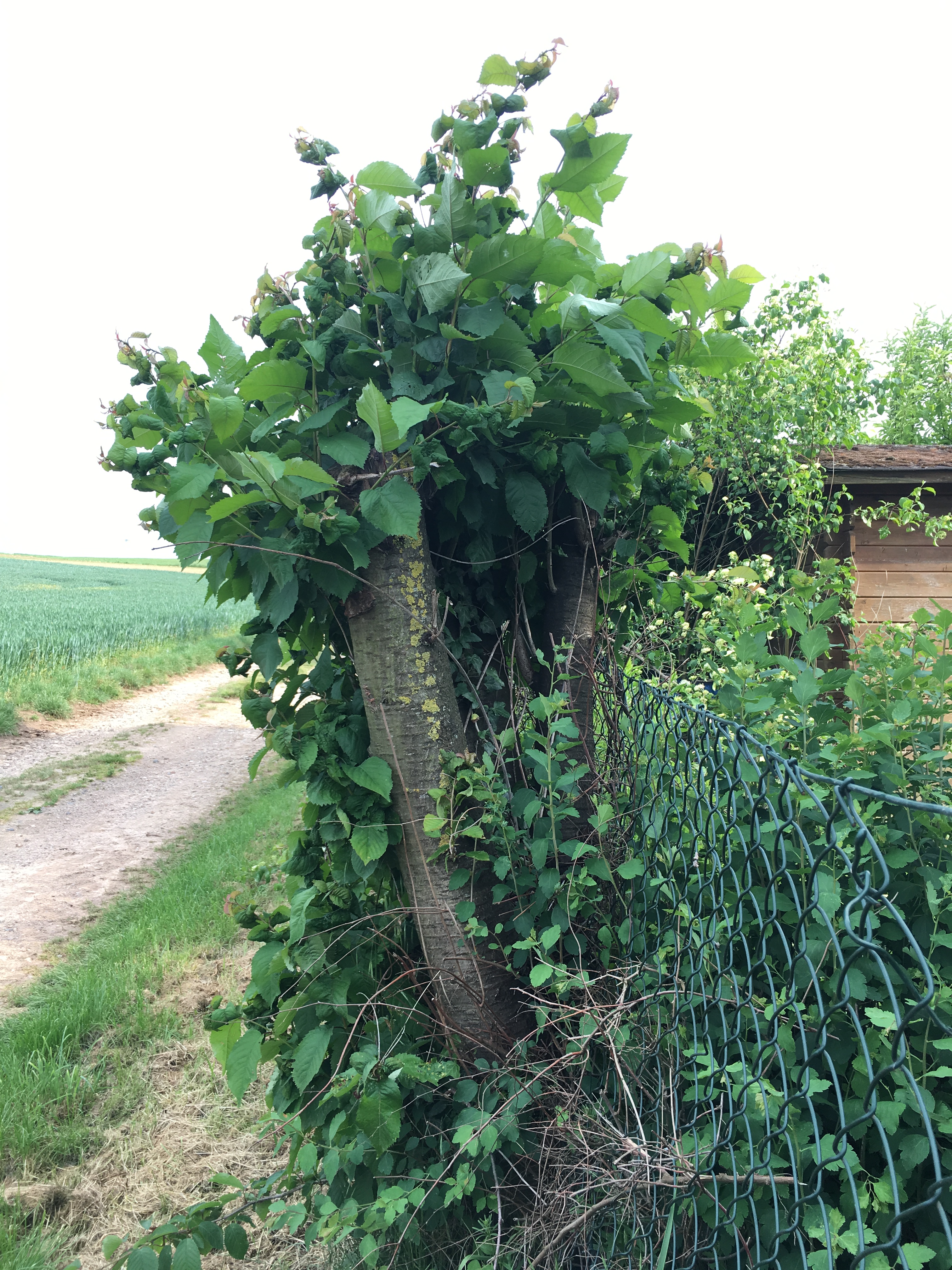 - Im Zaun verwachsene Wildkirsche wächst beständig weiter