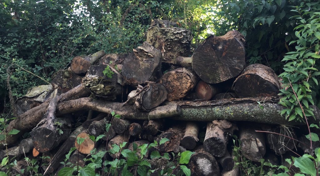 Der bisher großflächig angelegte Totholzhaufen (also mehr oder weniger einfach hingeworfene…) ist an seinen Bestimmungsort umgezogen und gestaltet sich jetzt etwas kompakter. Natürlich gab es keine Vertreibung der bisherigen Bewohner, die sind natürlich mit umgezogen.