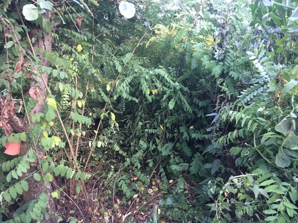 - Robinien, Eichen und Wildpflaumen nehmen den vorhandenen Beeren- und Obstgehölzen zunehmend mehr Raum und Licht