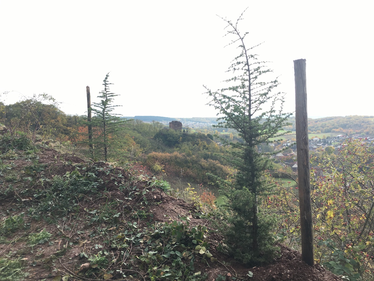Mit vereinten Kräften gegraben, gepflanzt und gesichert: Der Geschwister-Patenbaum mit einer Höhe von 88 cm. Schade nur, dass ich scheinbar keine Fotos davon gemacht hatte