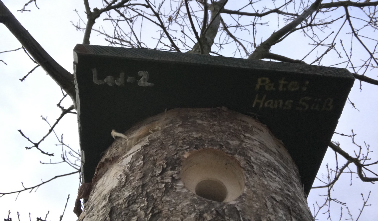 Erste Spechthöhle bereitgestellt im Hirschkäfer-Projekt.