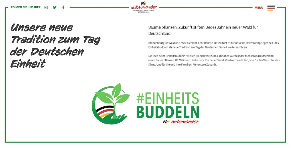 Die vom Land Schleswig-Holstein ins Leben gerufene junge Tradition zum Tag der Deutschen Einheit wird 2020 vom Land Brandenburg weitergeführt, das in diesem Jahr die Bundesratspräsidentschaft inne hat.