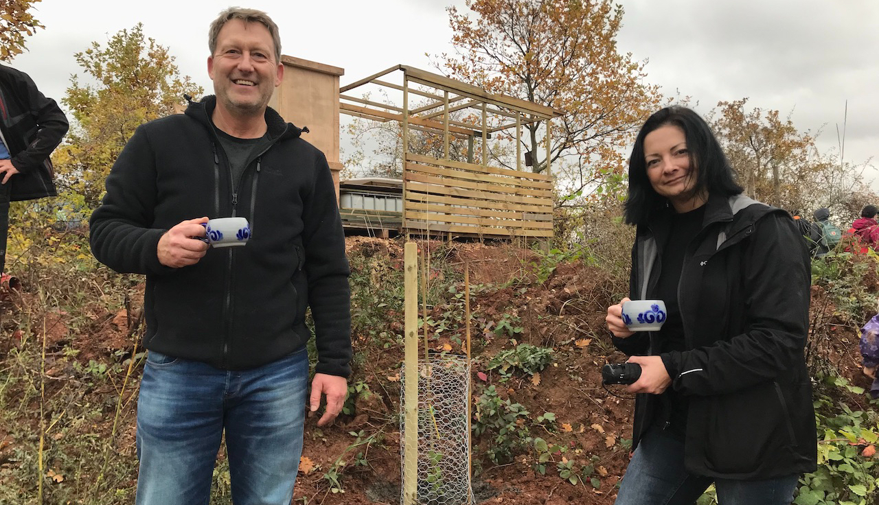 Die zweite und dritte Stein-Eiche wurden derart schnell und fachmännisch gepflanzt, dass es davon gar keine Fotos gibt. Lag sicherlich auch an der tatkräftigen Unterstützung von Tochter und Sohn 😉