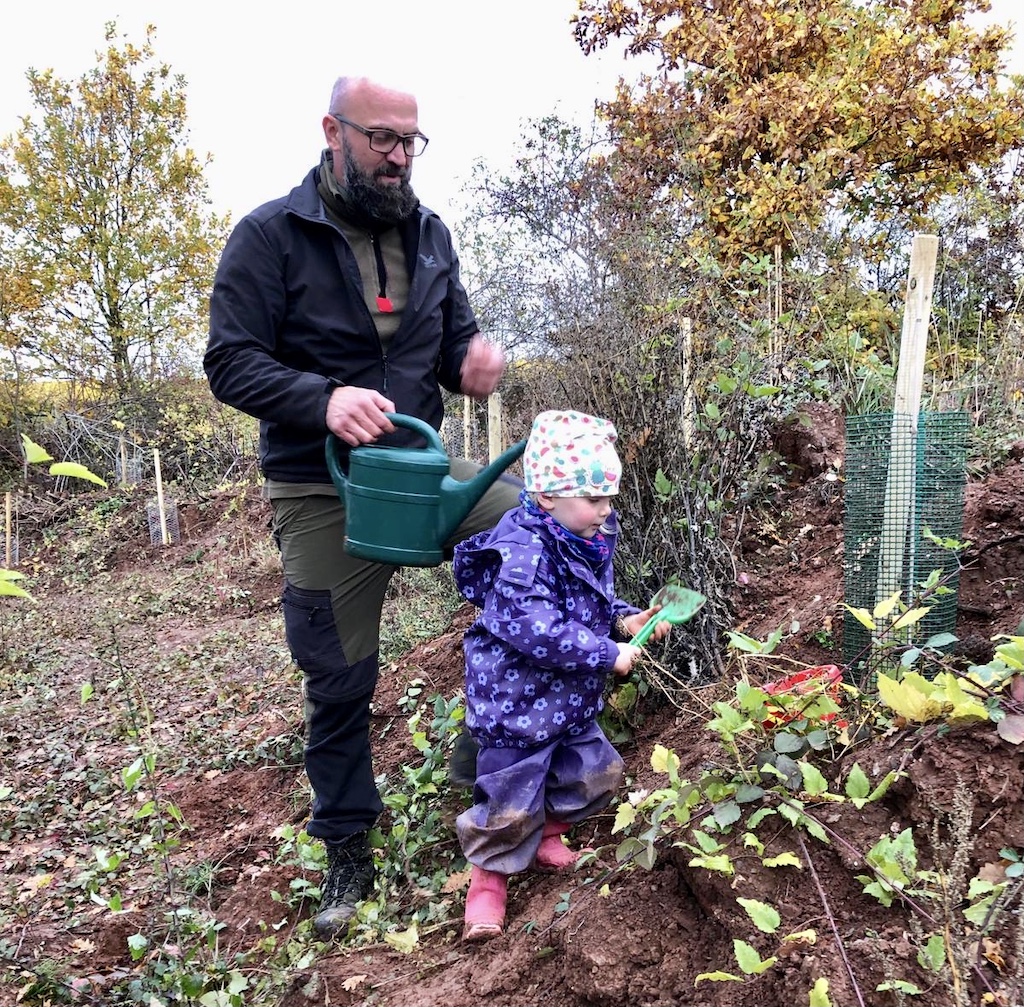 2020-11-01: Je später die Party, desto jünger die Buddler. Nach einem ordentlichen Mittagsschläfchen, buddelt es sich halt einfach besser und die Matschepampe bekommt erst dann die richtige Konsistenz, um eine Deutsche Eiche aus Schweden direkt an die Hirschkäfer-Wiege zu setzen.