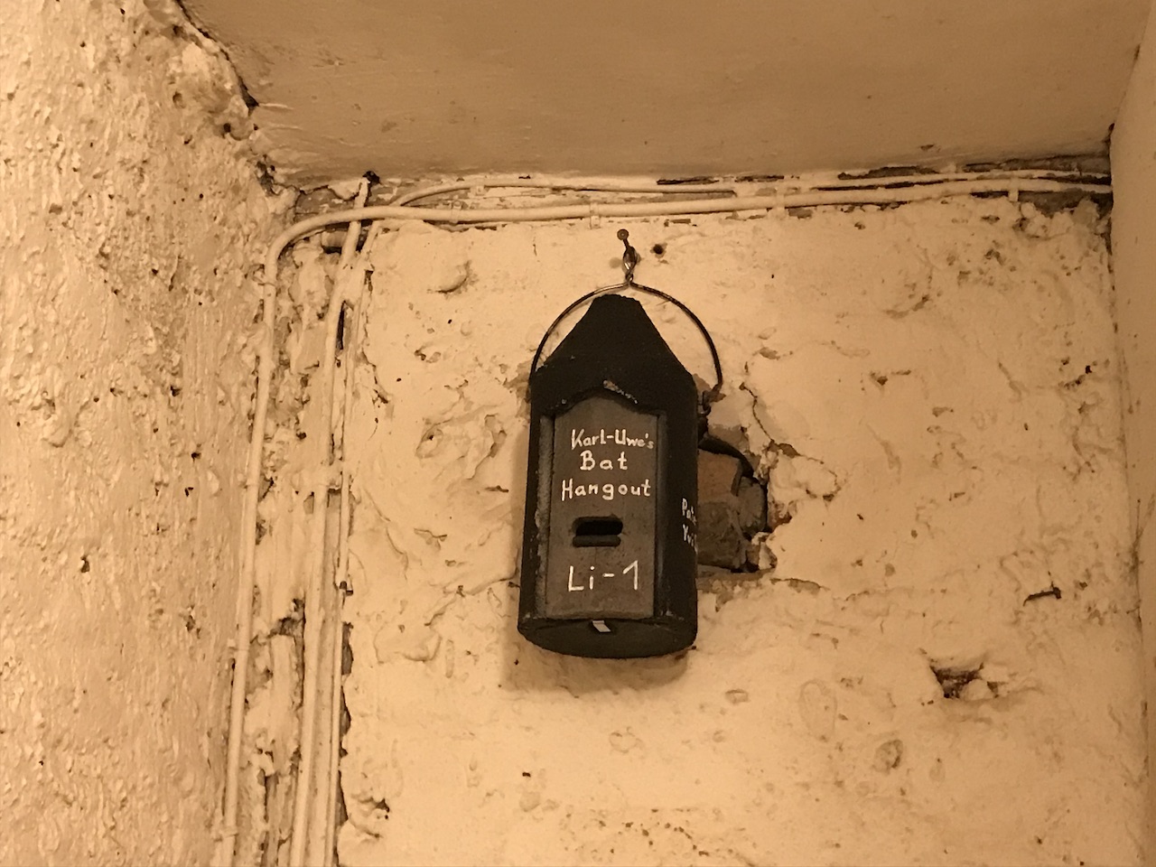 Um dieser Ruhestörung zur Fledermaus-Schlafenszeit ein Ende zu bereiten, wurde heute für Karl-Uwe ein Quartier bereitgestellt, das ihm erforderlichenfalls auch ein störungsfreies Überwintern an seinem Lieblingsplatz ermöglicht.