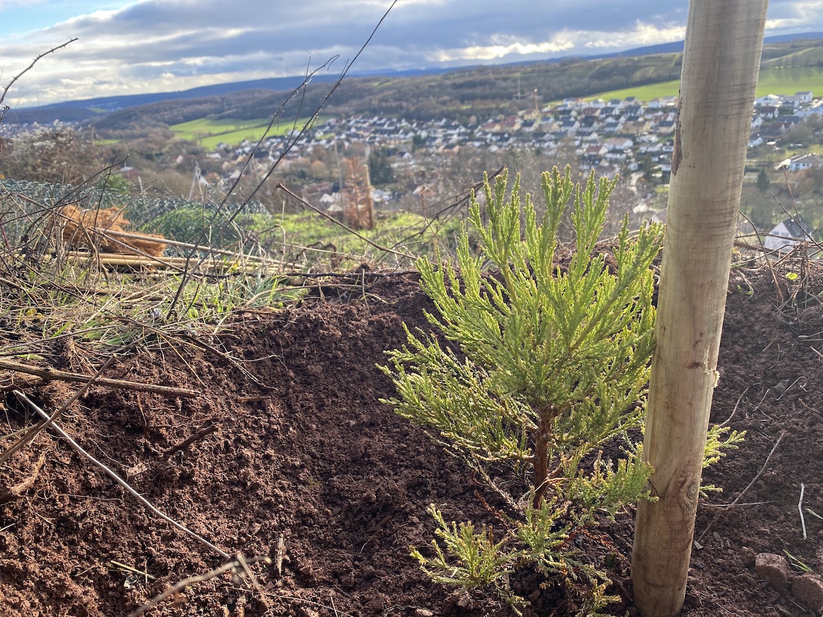 2020-12-24: Ein neuer Berg-Mammutbaum zieht um ins Arboretum und darf etwas oberhalb der Atlas-Zeder seine Wurzeln schlagen.