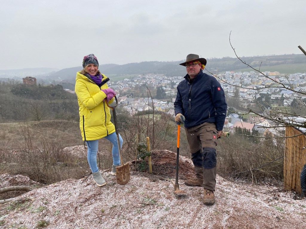 2021-02-08: Zusammen mit dem SWR-Fernsehteam wurde ein zweiter stachliger Immergrüner gepflanzt, der auch Namensgeber für die zuvor in die Lederhose gepflanzte Quercus ilex aus der Gattung der Eichen ist, weil deren Blätter gegen Fressfeinde ähnlich stachelbewehrt sind.