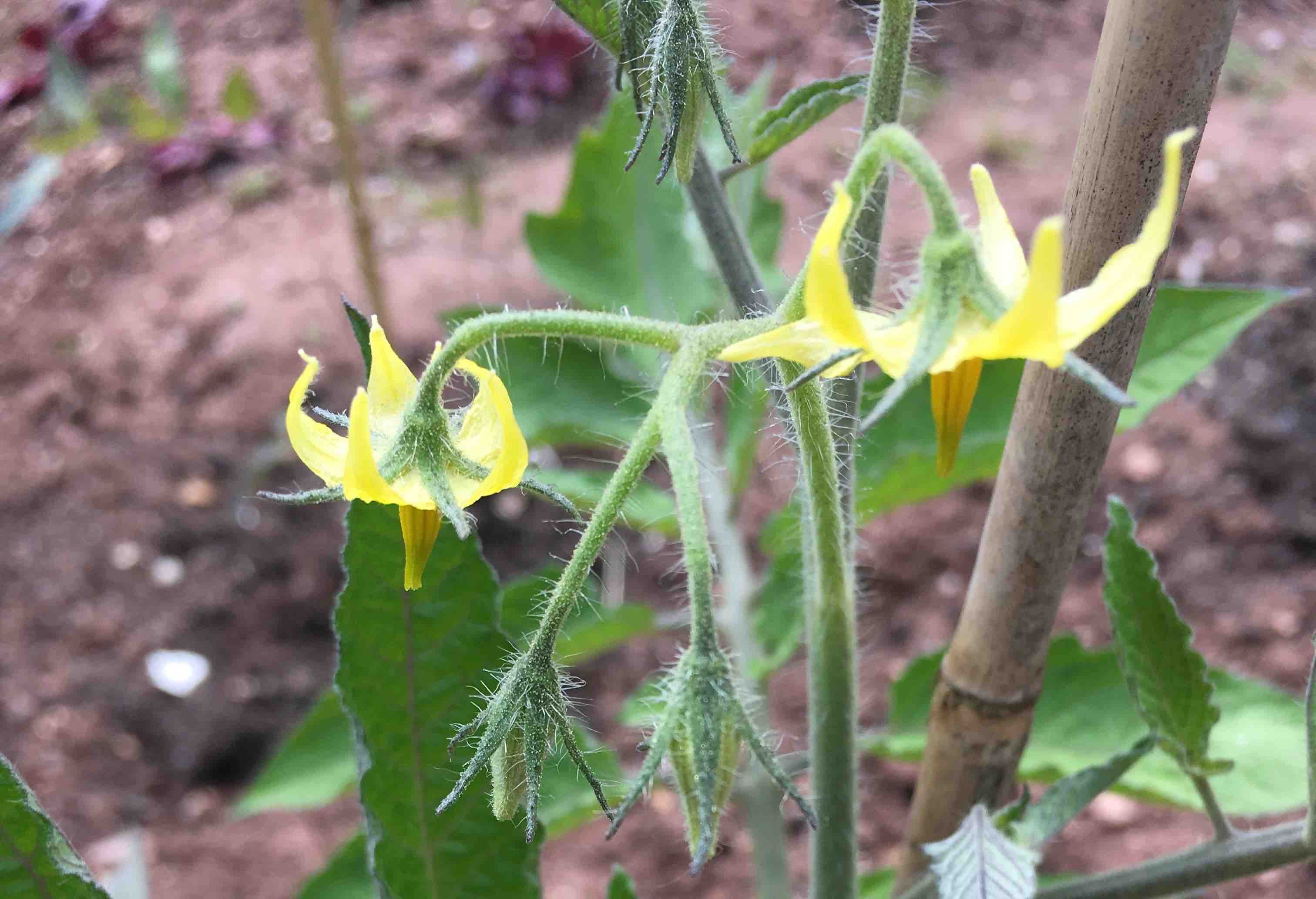 2019-05-29 Gutenberg: Erste Blüten zeigen sich an den Tomaten von Hannelore, „Super Roma VR“ scheint superschnell loszulegen…