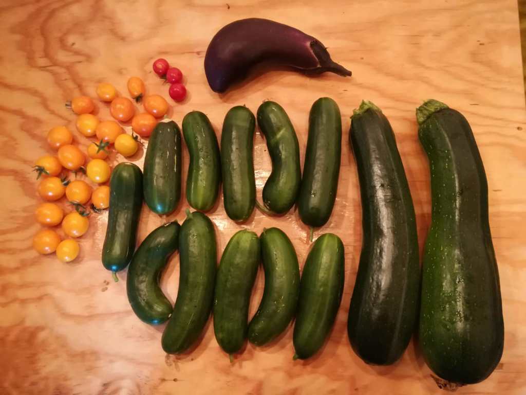 …besonders erwähnenswert die außergewöhnlich schön gewachsene Hokkaido-Tomate mit reichlich Auslauf 😉