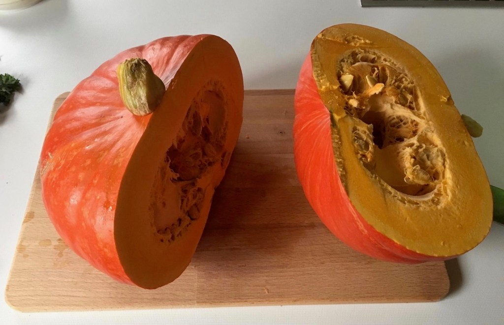 Zugegebenermaßen ist die Auswahl an Kürbissen nicht so groß, aber durch einen Zufallsfund in einem ArtenReich-Projektgebiet – wahrscheinlich ein wildwüchsig überlebender Selbstaussäher früherer Pflanzungen – wird sich im kommenden Jahr zu dem gelb-roten Bruder auch noch ein grüner Hokkaido gesellen. Schon mal als Vorgeschmack: Er erinnert an Kartoffeln, Karotten und Maronen, schmeckt sogar etwas nussig – einfach lecker!