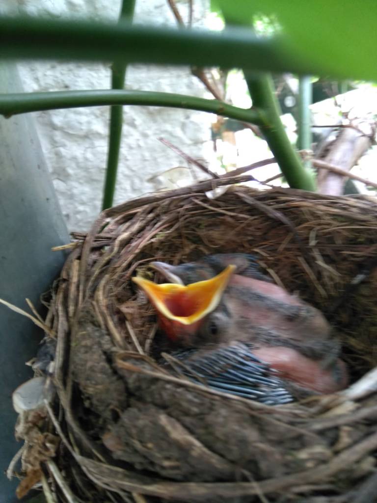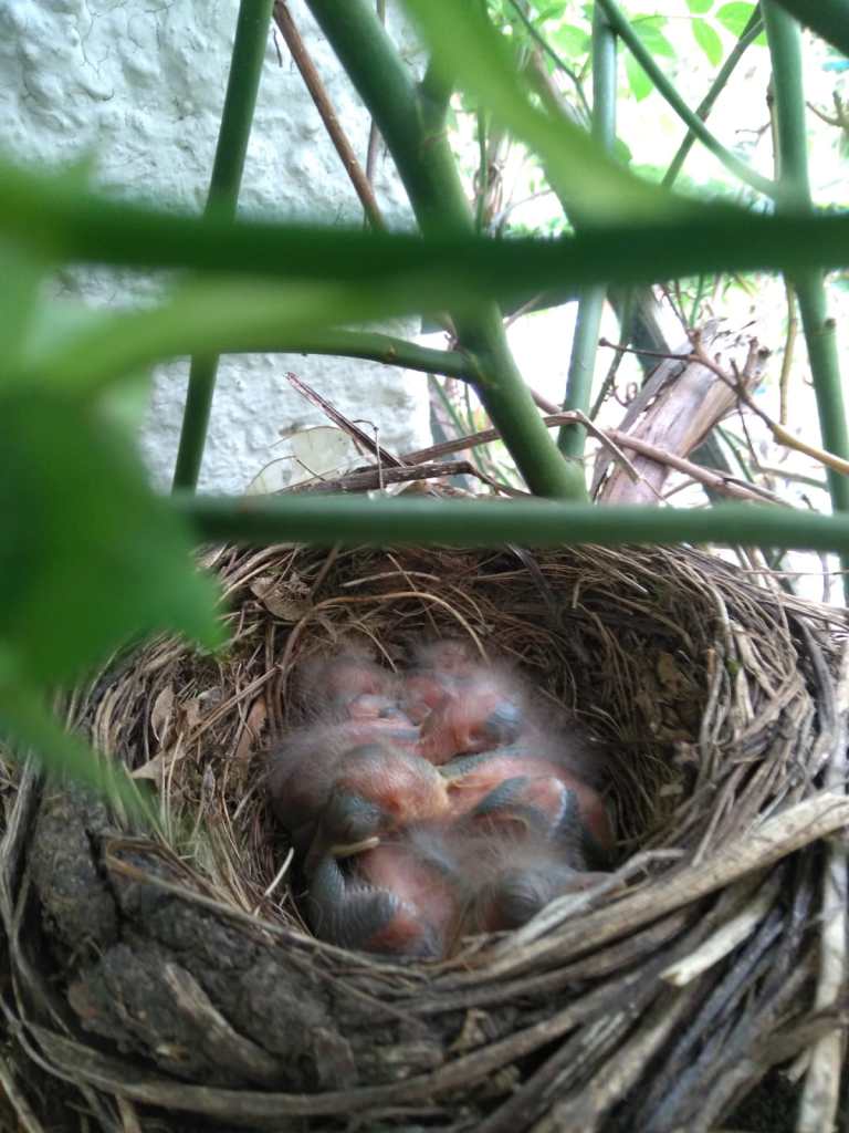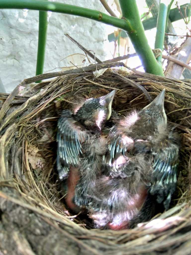 Dank Sicherungsmaßnahmen an der Regentonne konnten aus den vier Eiern des Geleges innerhalb von 14 Tagen immerhin zwei Jungamseln im Nest heranwachsen.