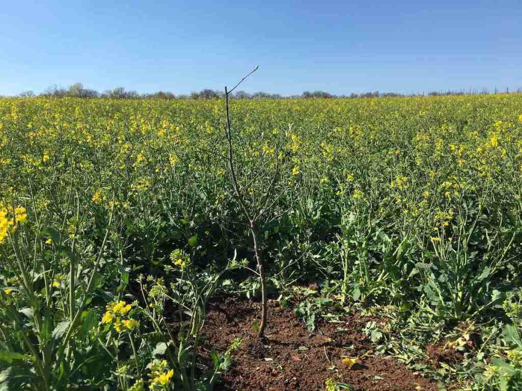 2019-04-20: Eine von Naturfreunden geschenkte Elsbeere, die sich selbst in deren Garten gepflanzt hatte, durfte als erster Baum auf der Bienenweide Monau seinen Platz einnehmen.