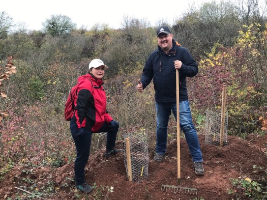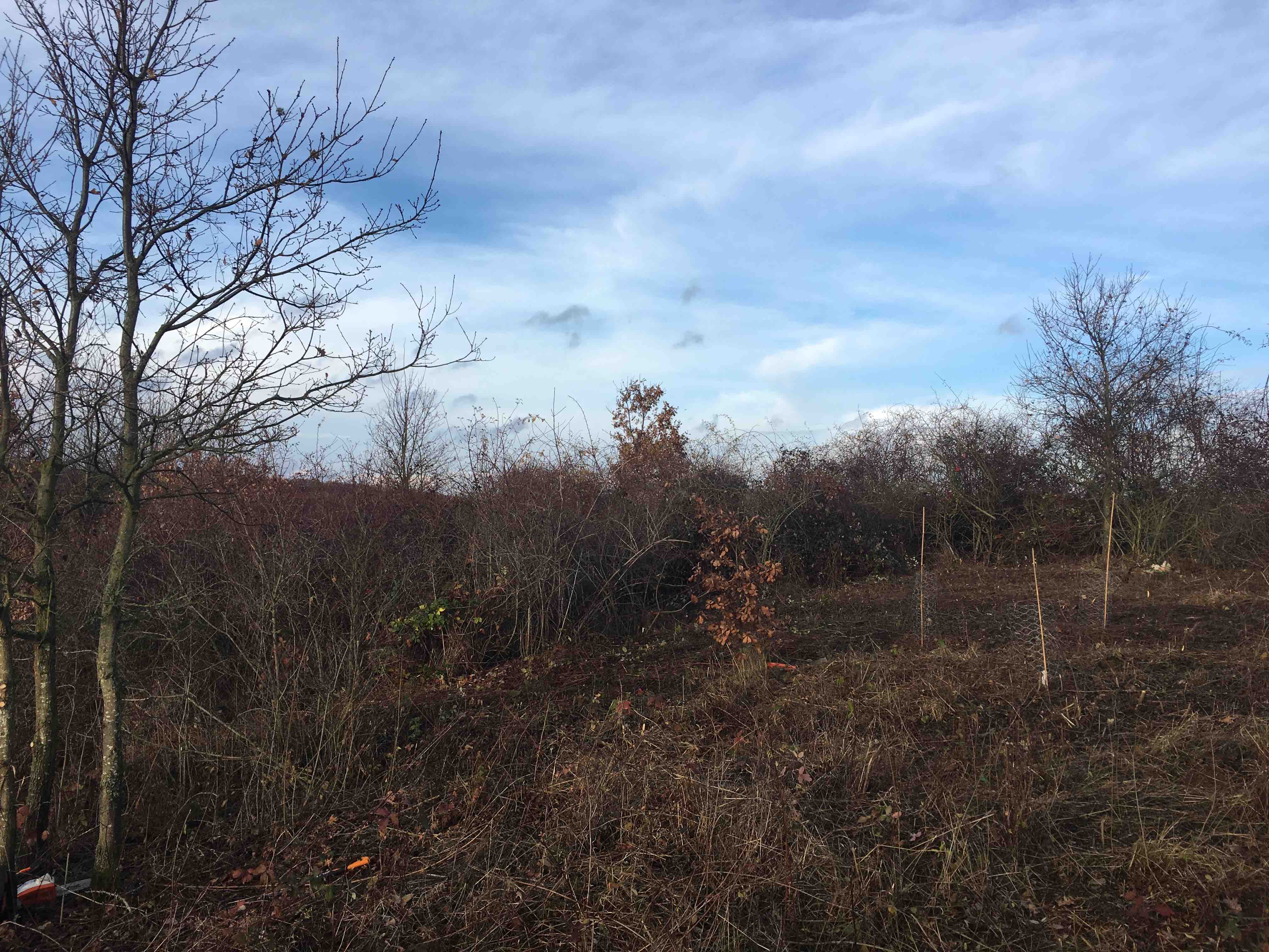 2018-11-30: Baumpate beginnt mit der Erschließung des neuen Naturschutz-Projekts und Pflanzung der ersten Patenbäume: Trauben-Eichen.