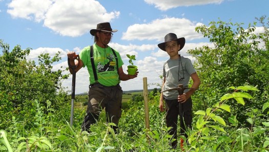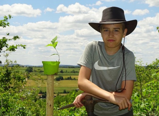 2019-06-21: Und wieder heißt es: Raus aus der Baumschule, rein in die Lederhose! Eine Pyramiden-Eiche, zwei Rot-Eichen und eine Stiel-Eiche durften den Schritt in die Freiheit unter Begleitung zweier ArtenReich-Ranger wagen.