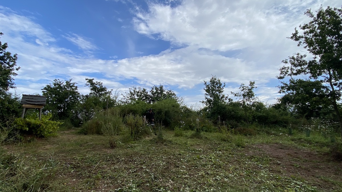 2021-08-02: Am Sonntag musste man noch über Brombeerranken stolpern und Hundsrosen ausweichen, aber dann kam Stefan – und Sense!