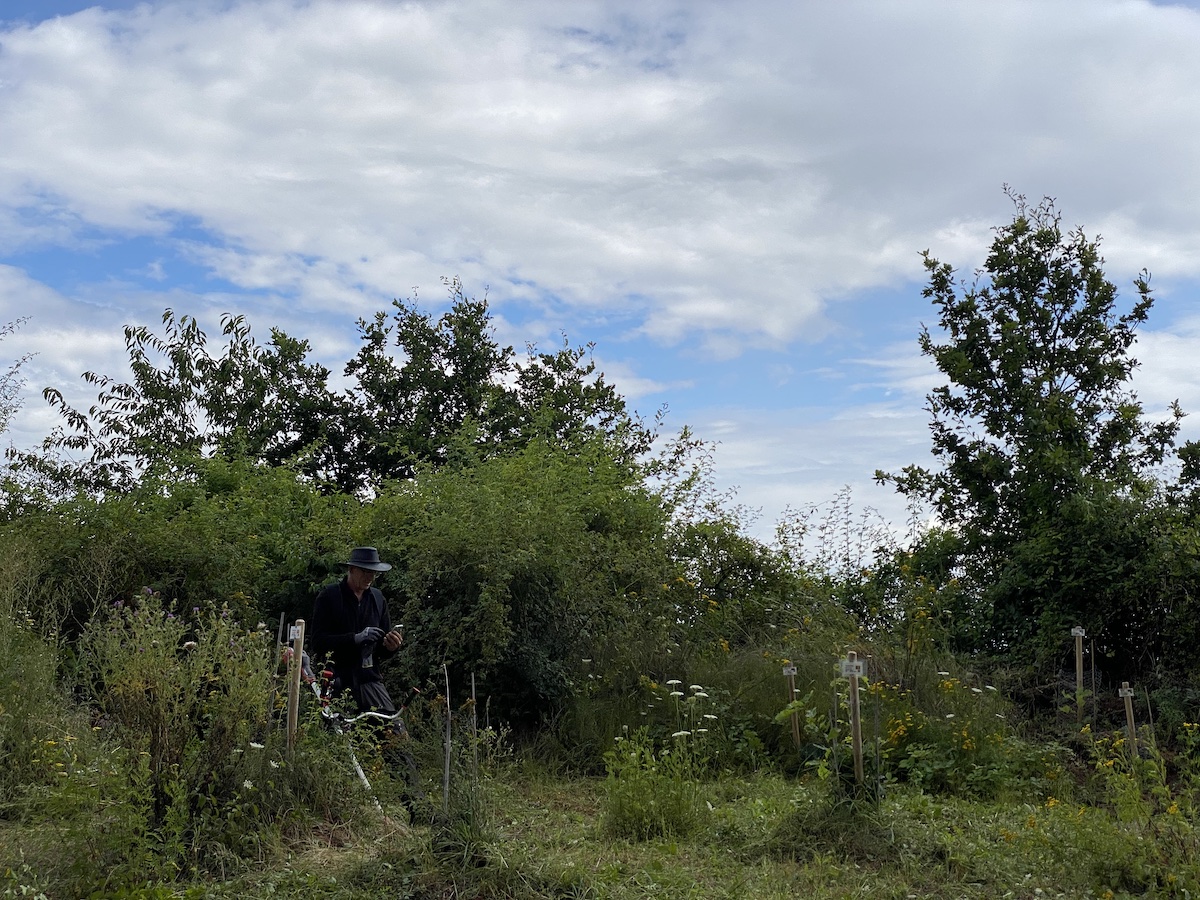 Natürlich sind auch einzelne Flächen im Sinne der Staffelmahd komplett ungeschoren geblieben, auch blühende Solitär-Inselchen mit Kratzdistel, Wilder Möhre und Schafgarbe, damit Insekten und Blühpflanzen sich nicht fehl am Platz fühlen, wie beispielsweise in einem sogenannten Englischen Garten.