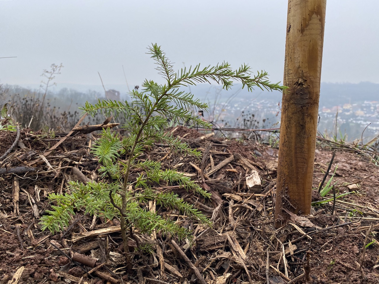 2021-11-06: Nach nichtmal einem Jahr im Arboretum, hat die kleine Hemlocktanne einiges an Größe zugelegt.