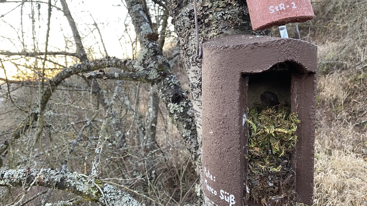 Brutsaison 2021 zeigt ein ausgiebig genutzes Nest - dem Gartenschläfer vom vorletzten Jahr war es hier wahrscheinlich zu dreckig, so dass er sich wohl lieber in der Nisthöhle StR-13 sein Winterquartier ausgebaut hat... 😉