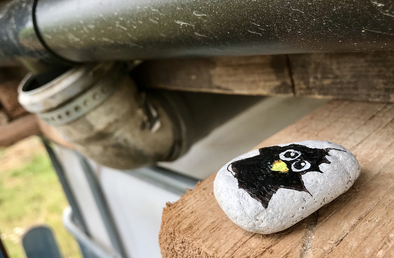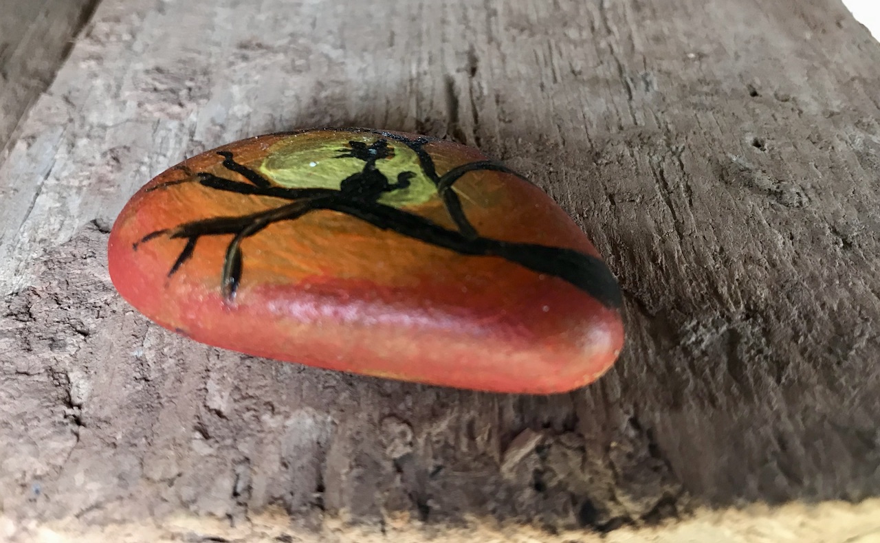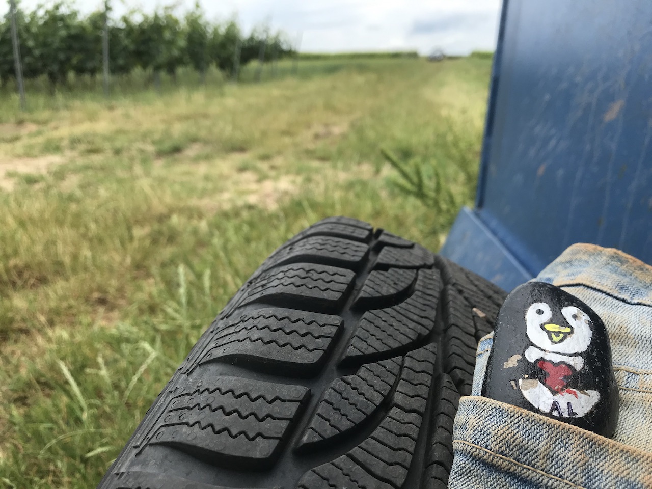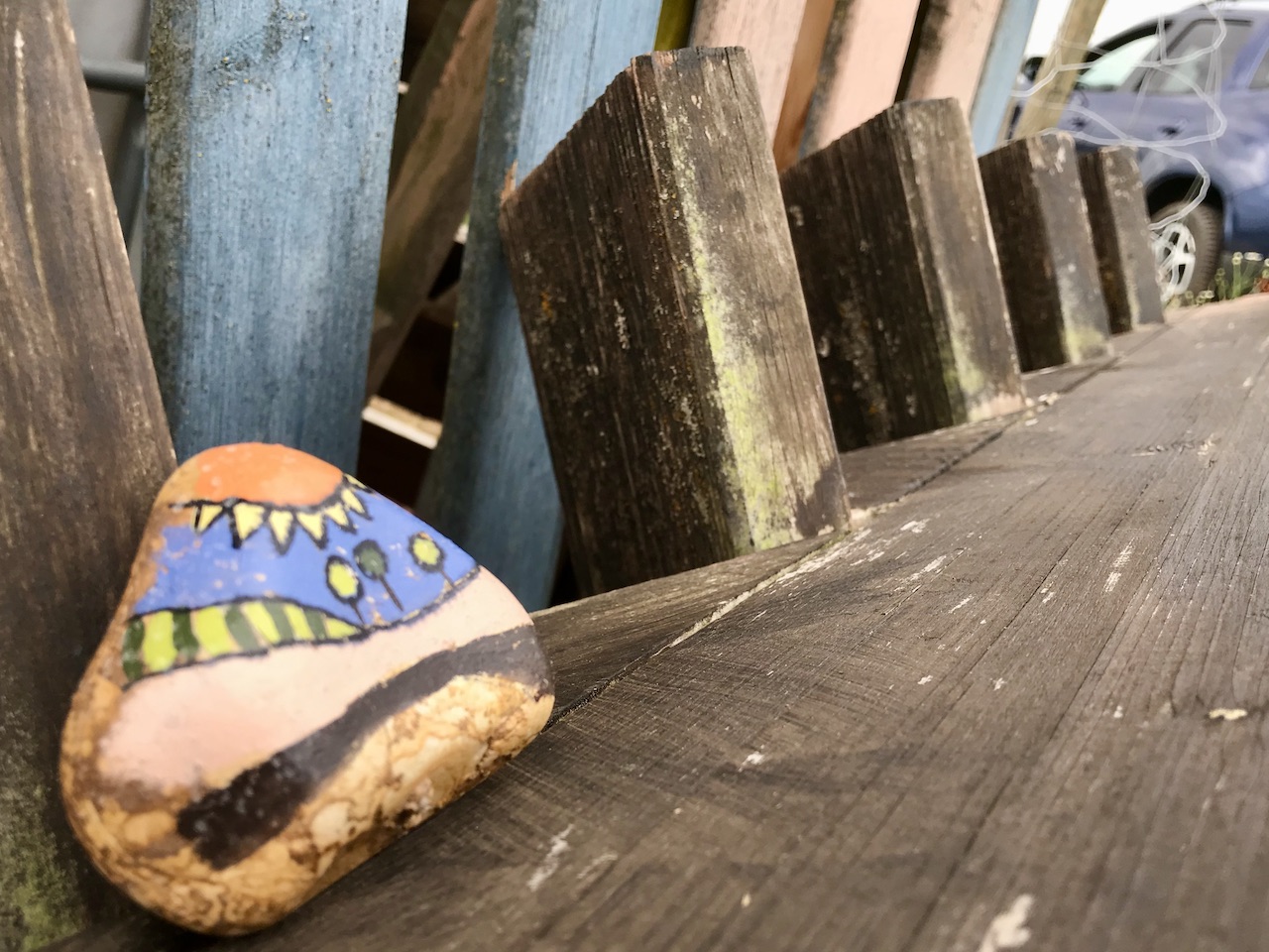 2020-06-15: Steinkleinkunst an der Bienenweide… angefangen hat es mit einem Kleinen in Franz’ alter Jeanshose die am zusammengebrochenen Anhänger lag…