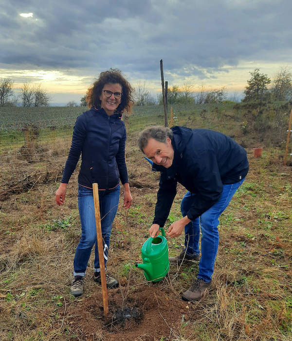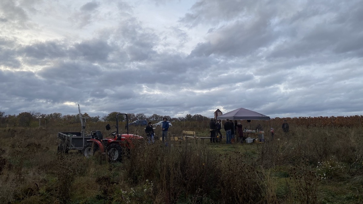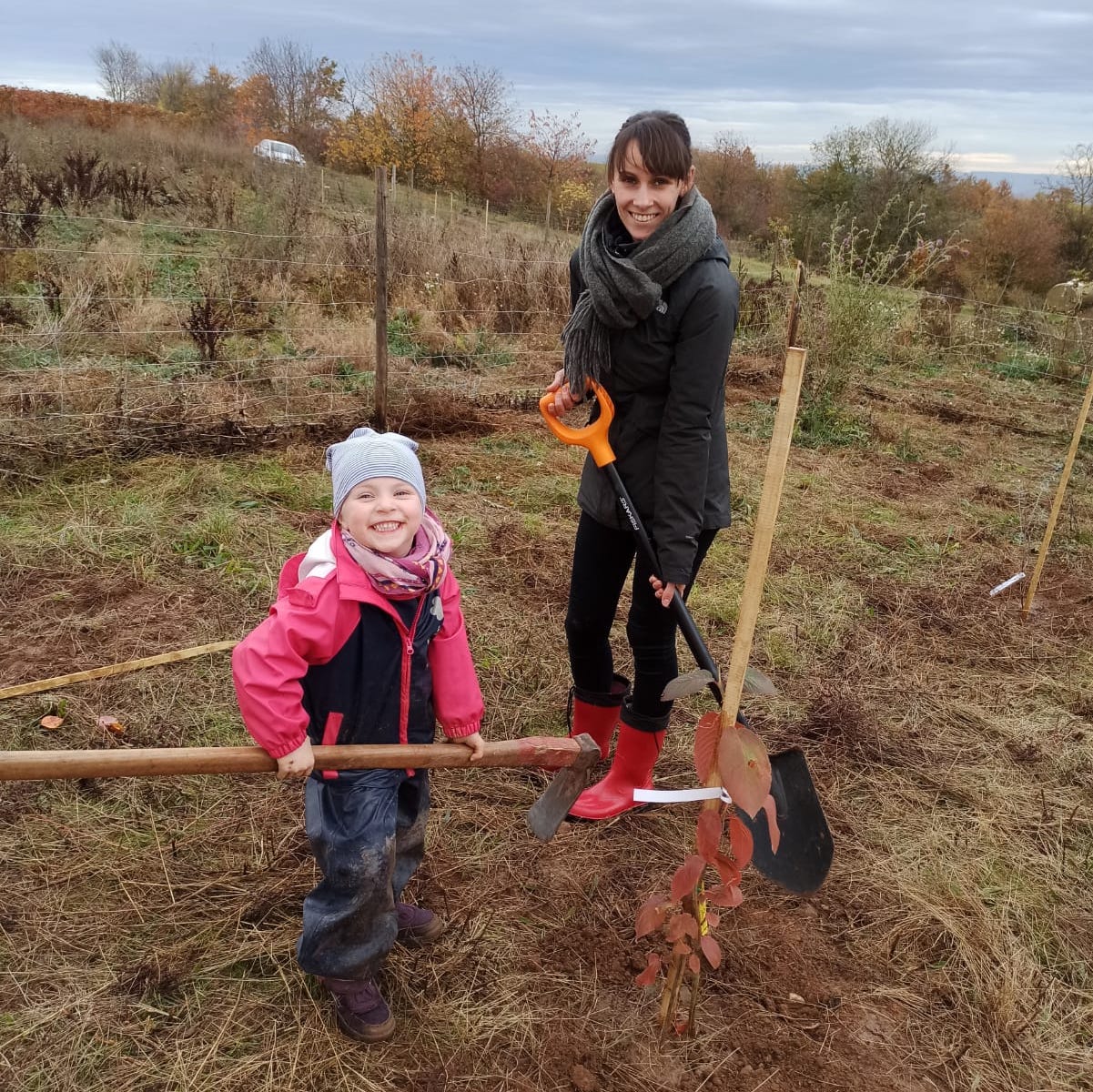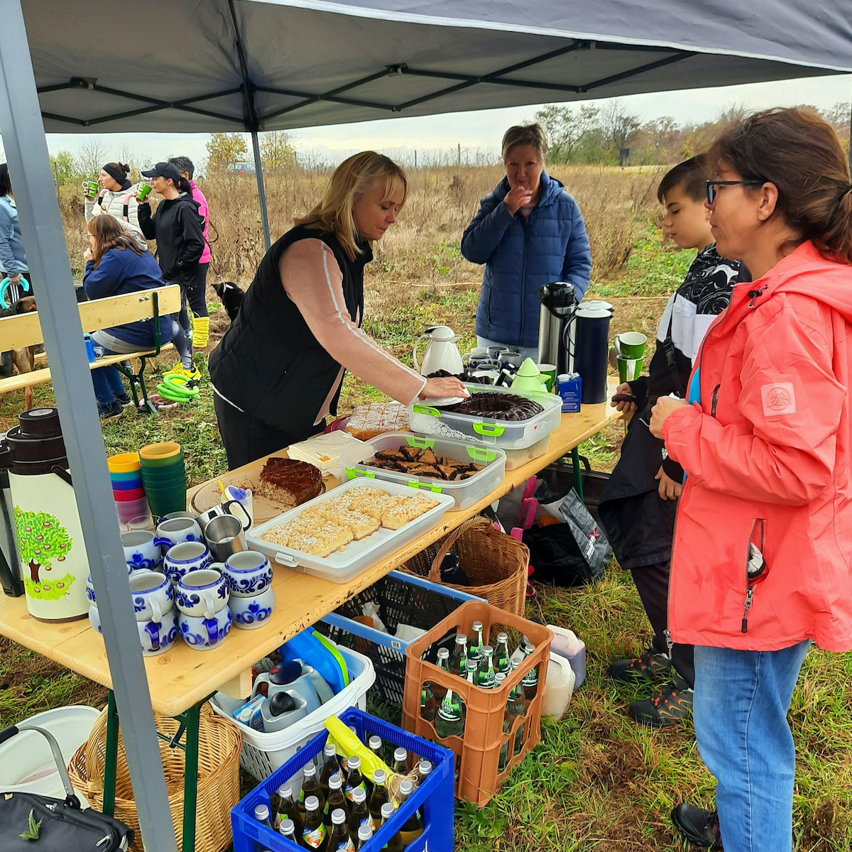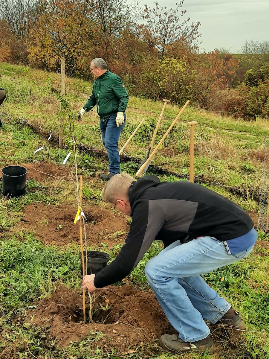 2021-10-31: Bilanz der Pflanzparty: 46 Wildobst- und Bienennährgehölze gepflanzt, etwa 40 Besucher und aktive Pflanzer begrüßt, 13 Baum-Patenschaften übernommen.