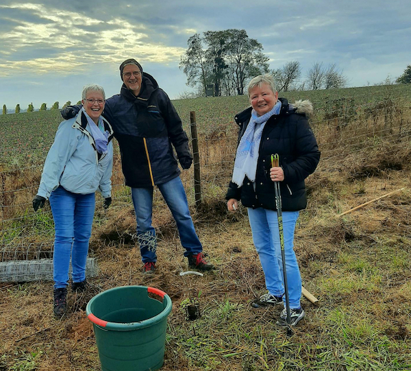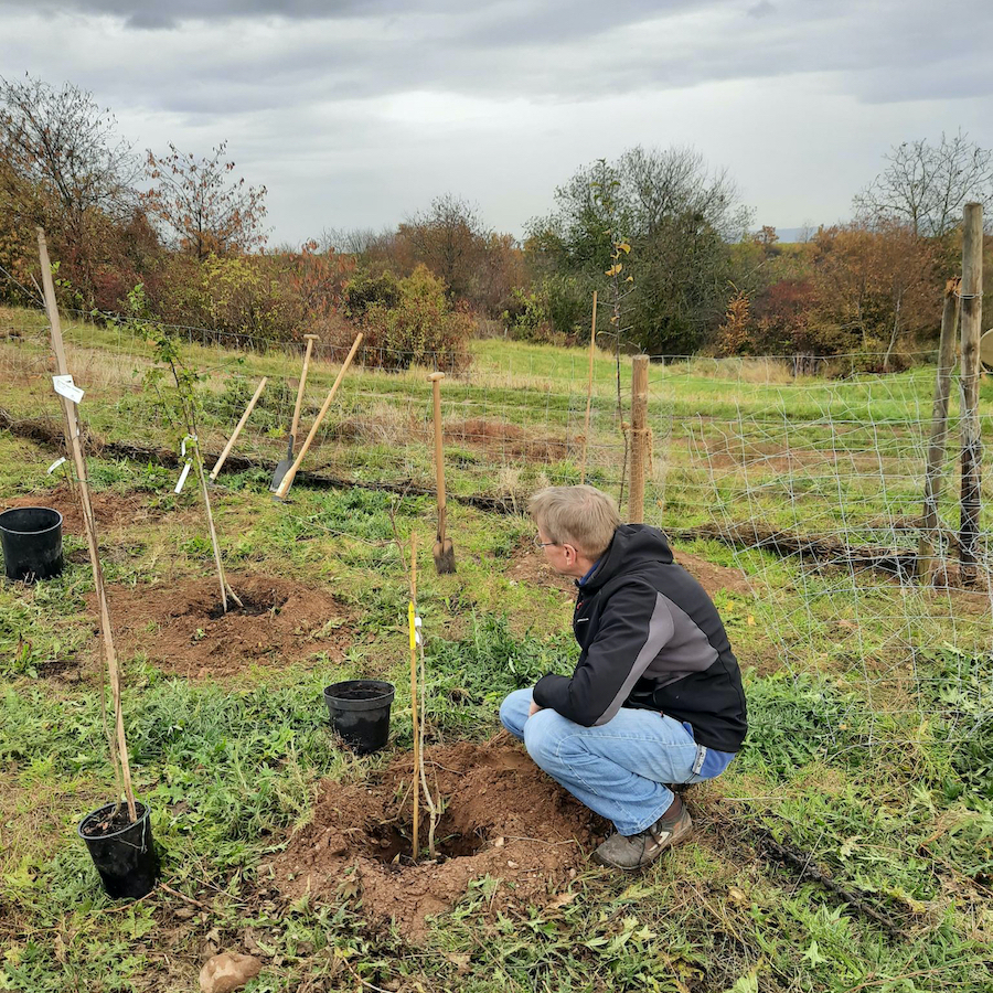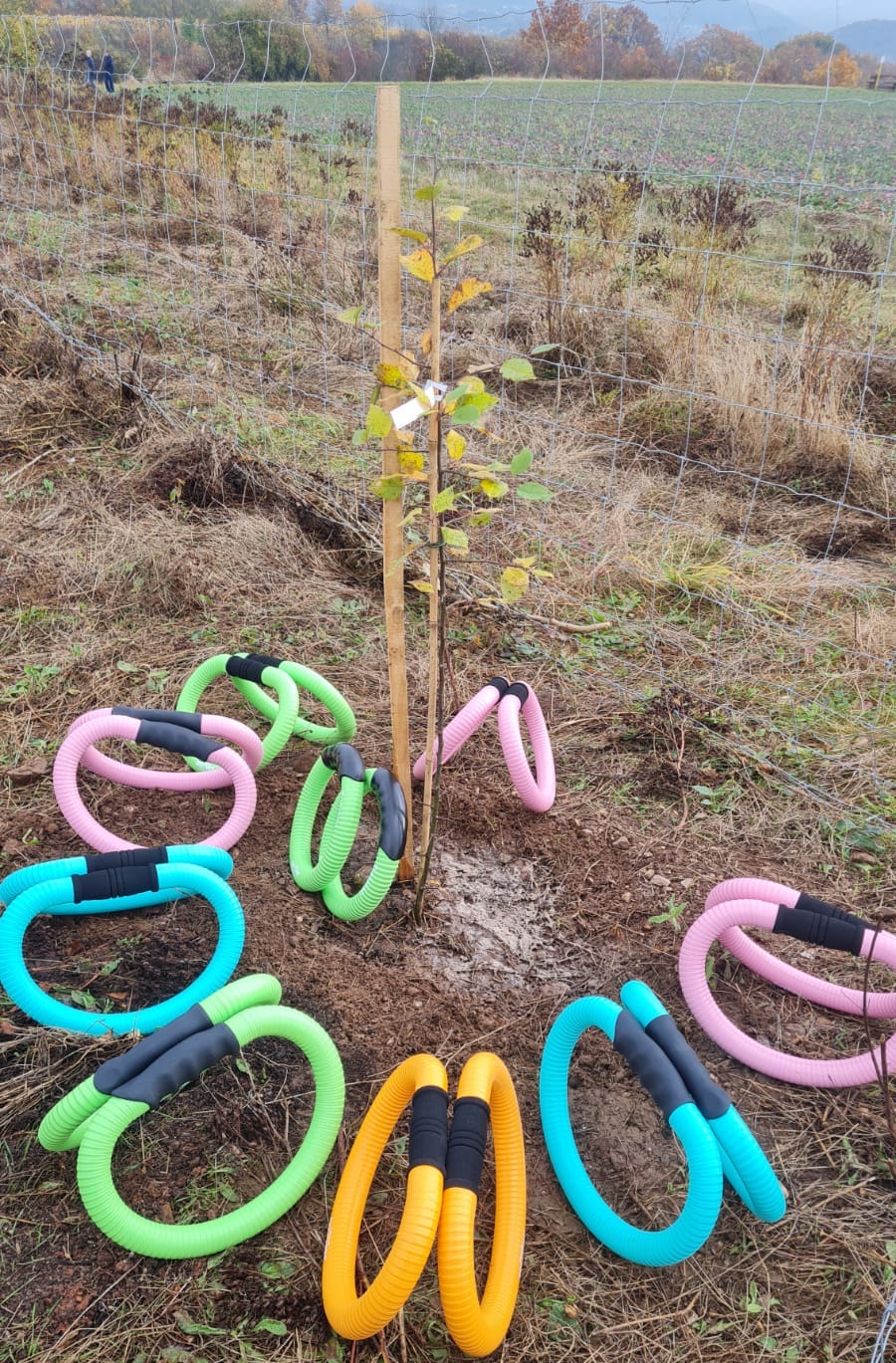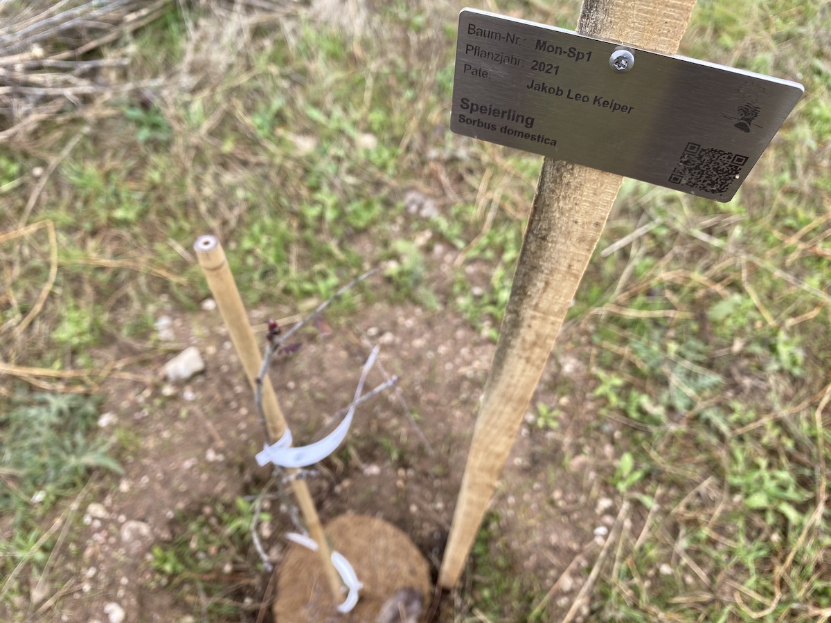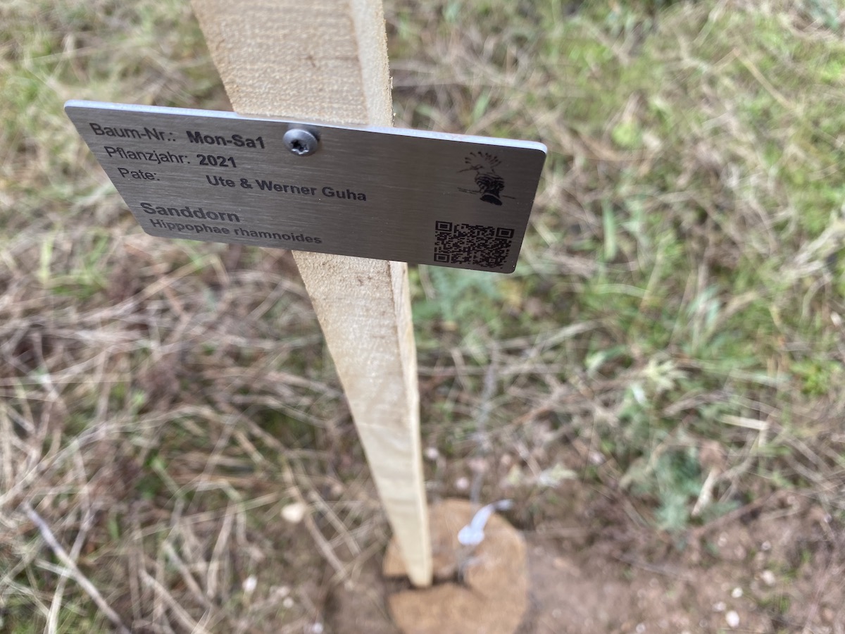 2021-12-03: Sollte sich einer der Monau-Baumpaten trotz des widrigen Wetters auf die Bienenweide verirren, so ist nun ein Auffinden des bei der Pflanzparty gepflanzten Patenbaums etwas leichter möglich.