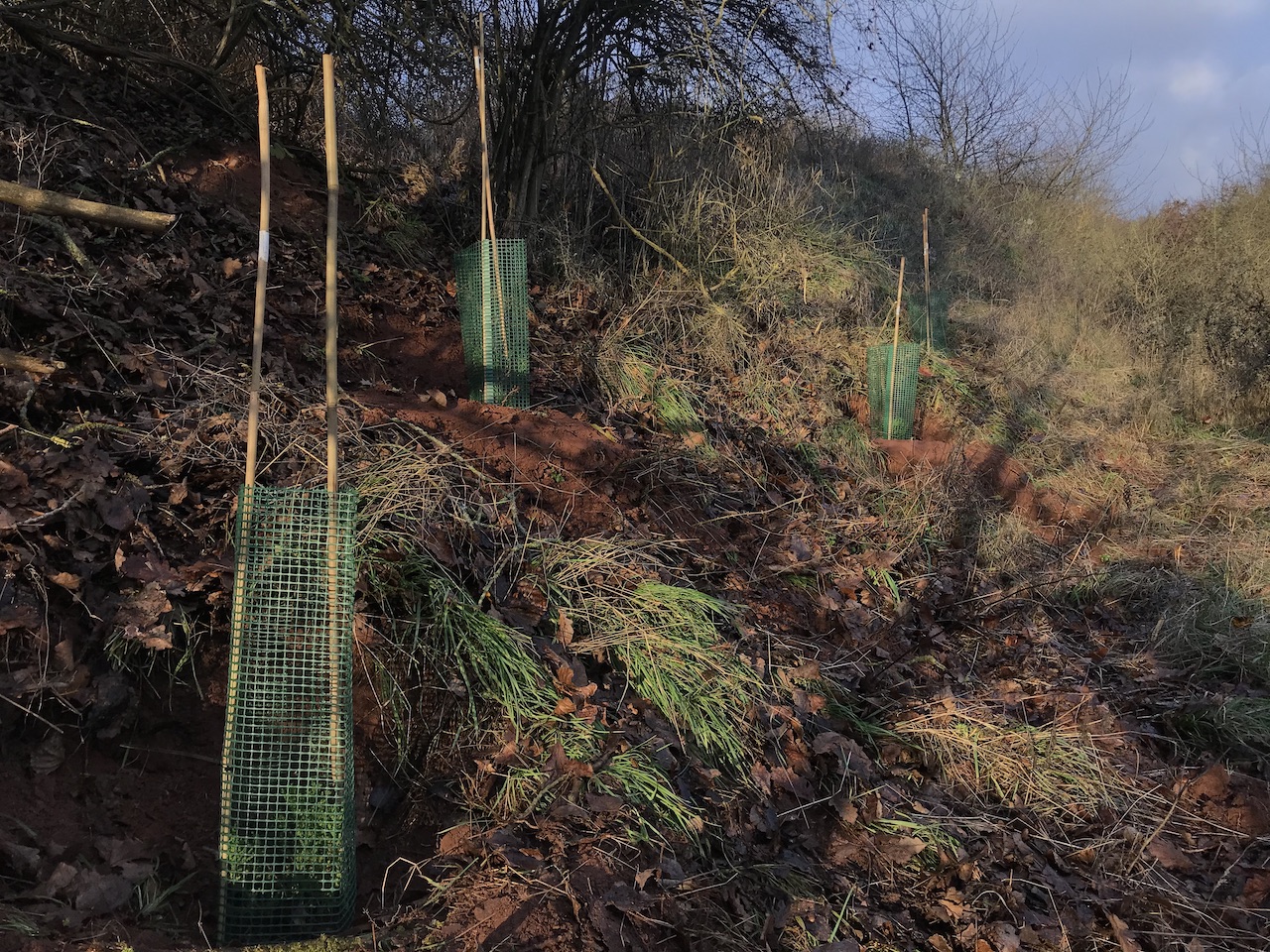 2021-12-29: Mittlerweile stehen im ArtenReich-KlimaWald 8 Berg-Mammutbäume und 4 Trauben-Eichen. Letztere waren schon da, bevor es das Projekt oder die ArtenReich gUG gab.