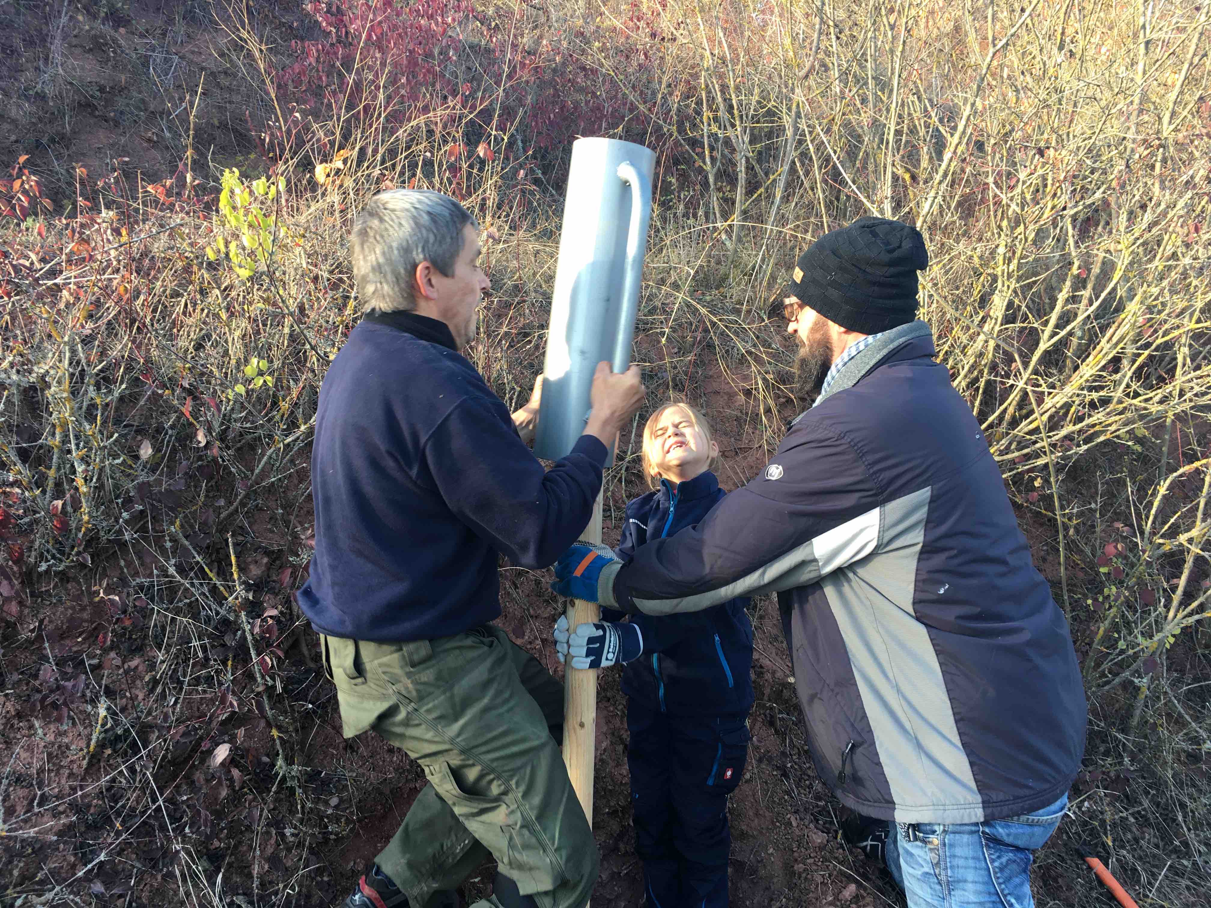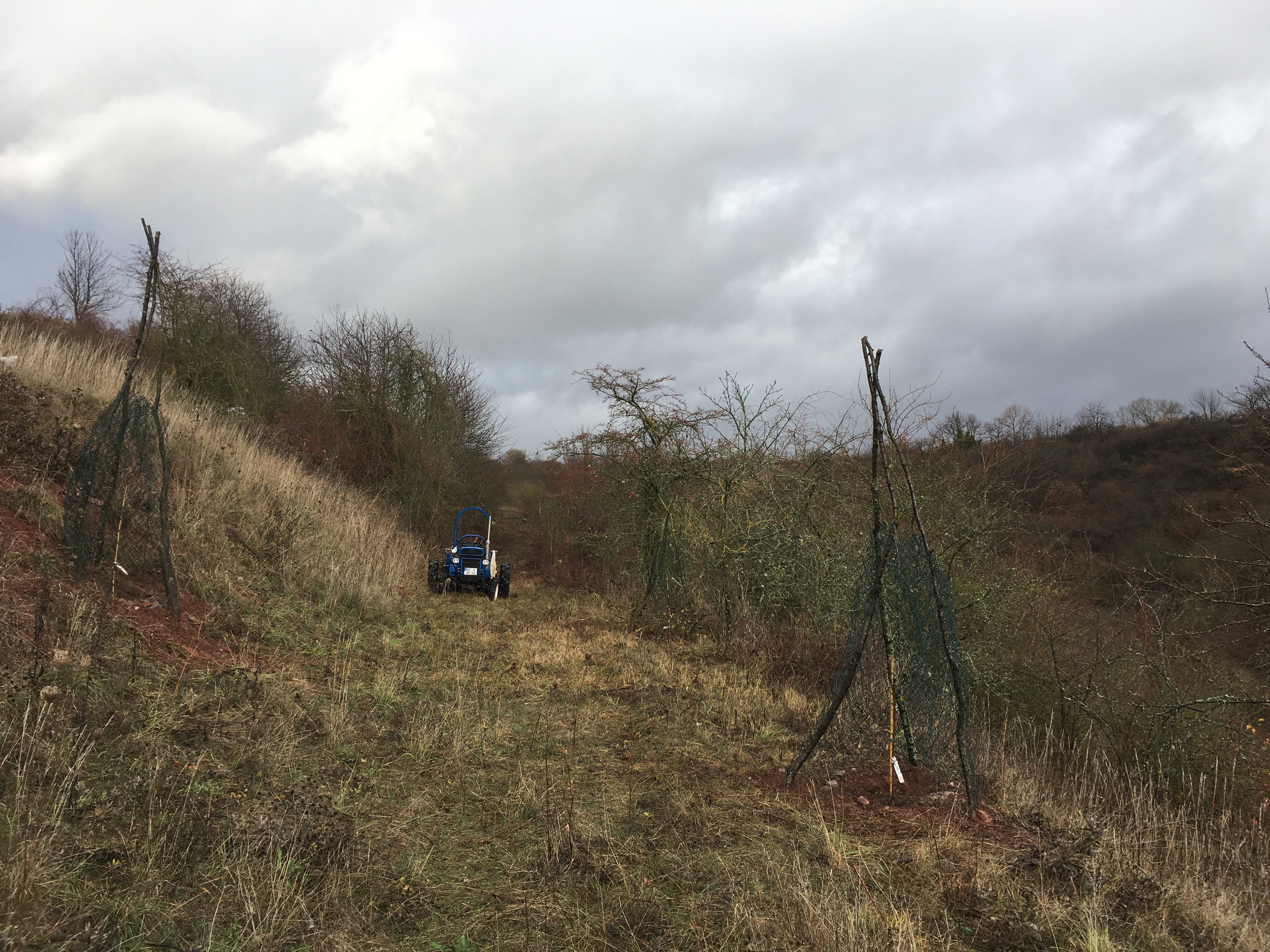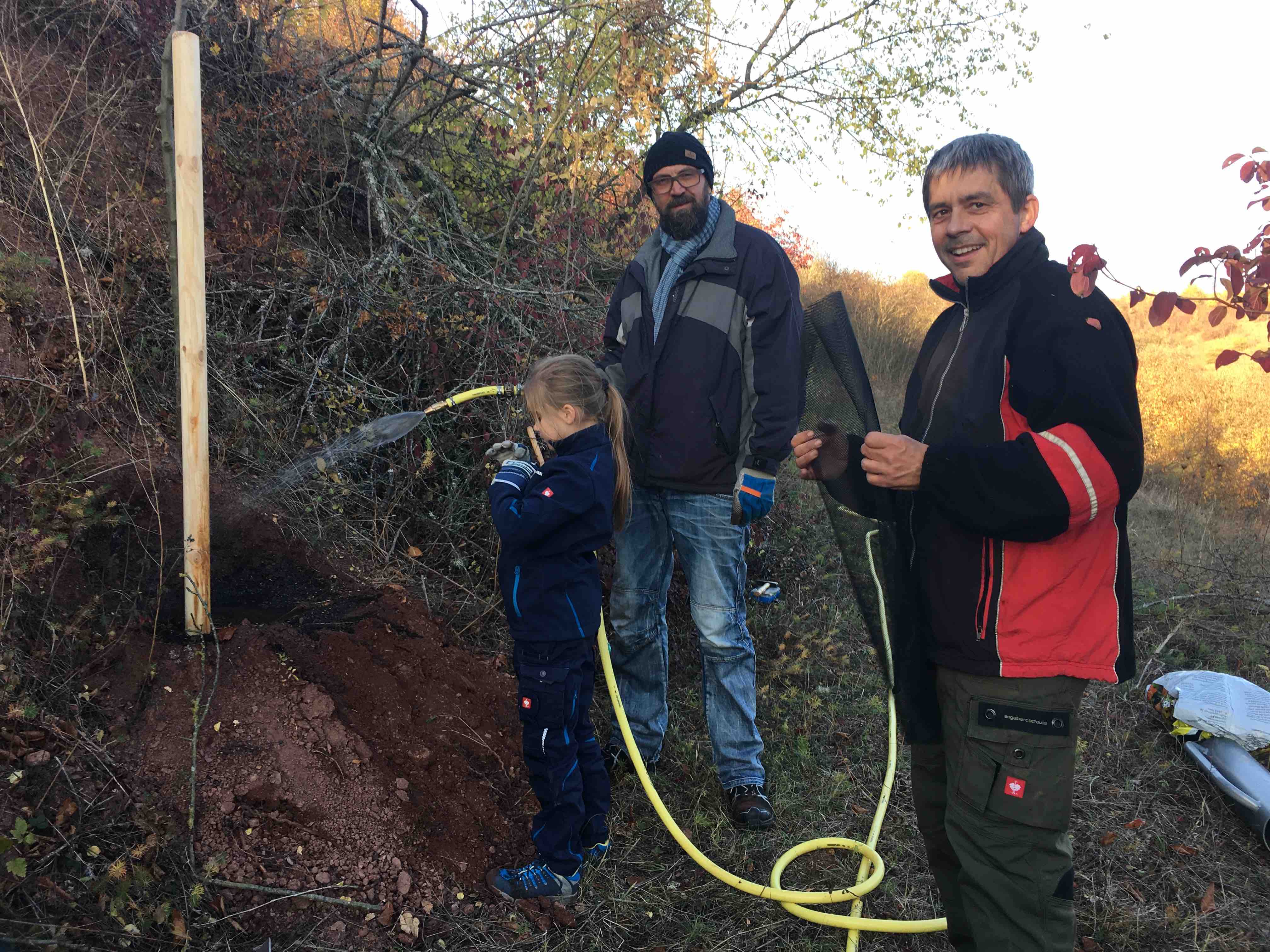 2017-11-11: Pflanzung der ersten 11 Hochstamm-Obstbäume – zwei Tage Schlammschlacht im Regen…