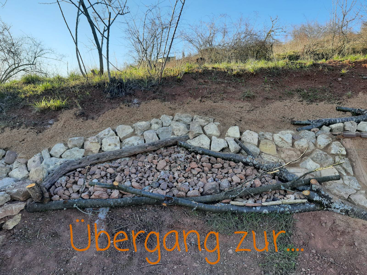 2021-03-06: Das war ja irgendwie im November schon klar, als Ranger Stefan seinen Rot-Ahorn an die Grenze zwischen Arboretum und Obstterrassen pflanzte, dass die hier geplante Bank mehr als einfach nur „nicht so aufwändig“, wie die letzte wird.