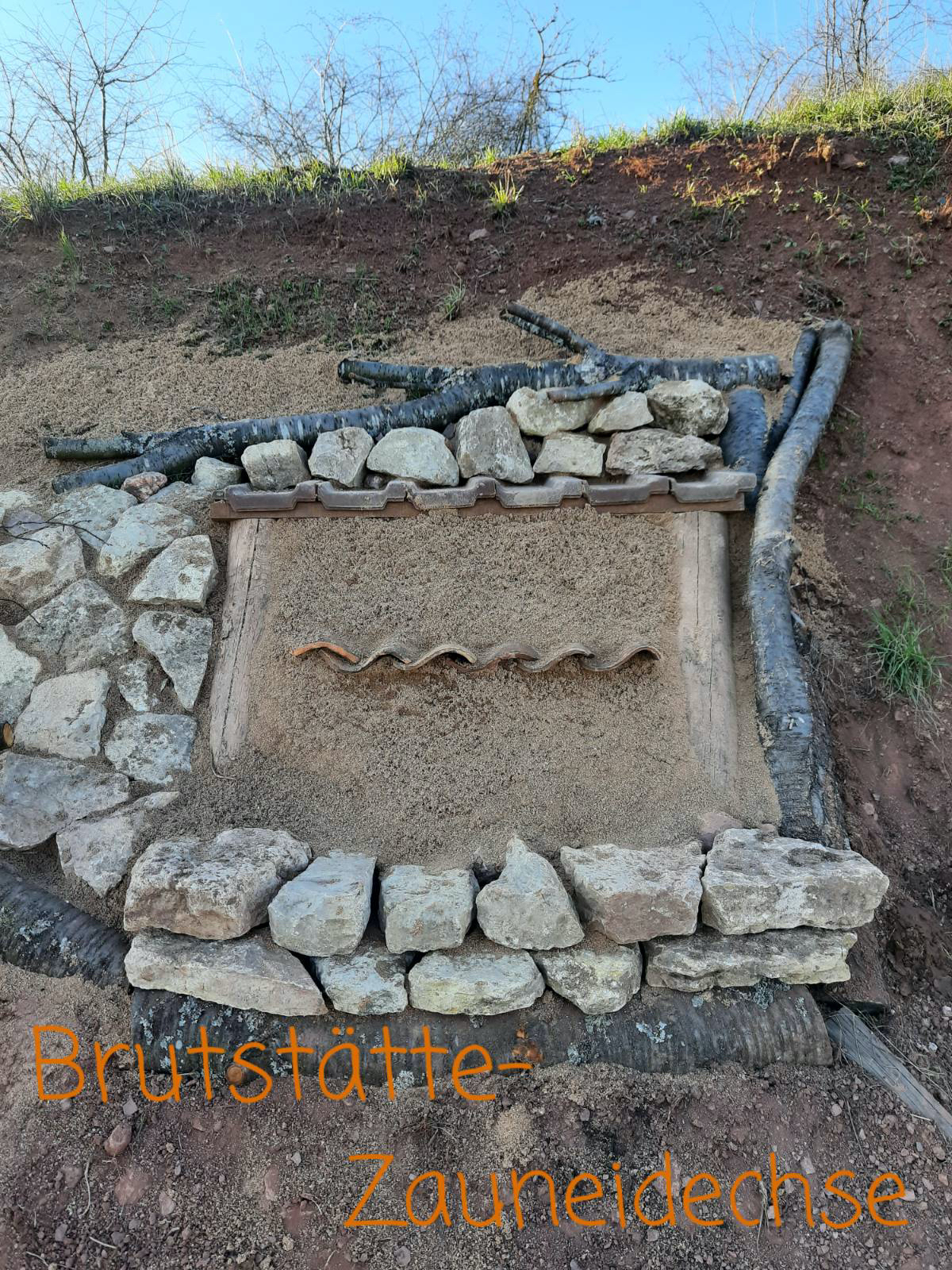 2021-07-24: Stefans Eidechsen-Brutstätte am sonnenverwöhnten Burgblick der Obstterrassen ist wunderbar angenommen worden.