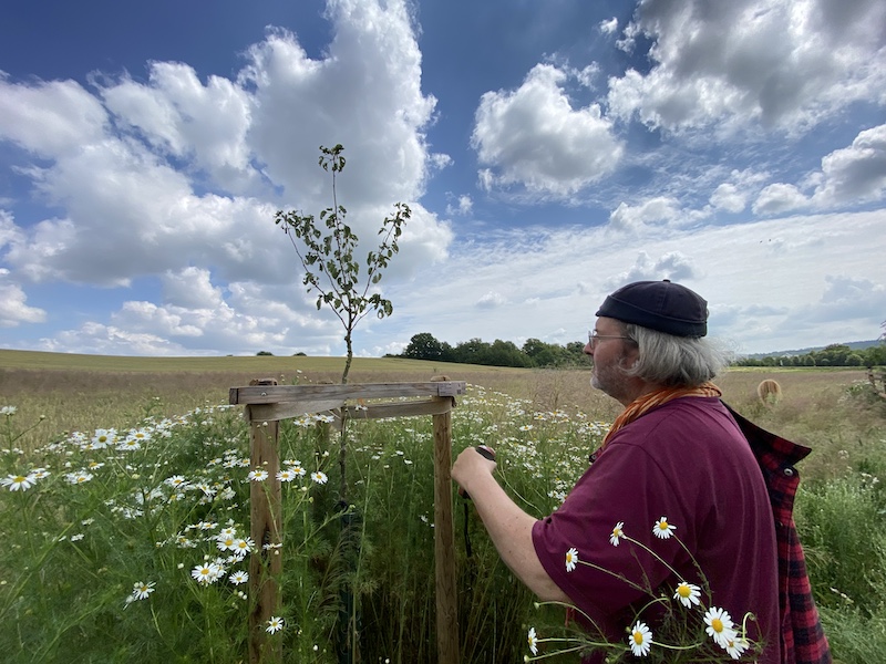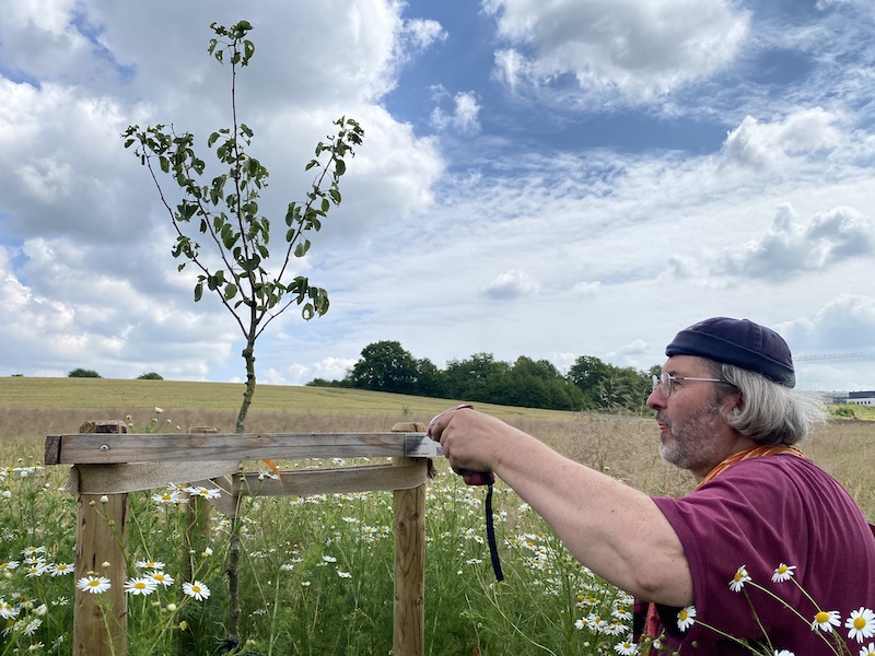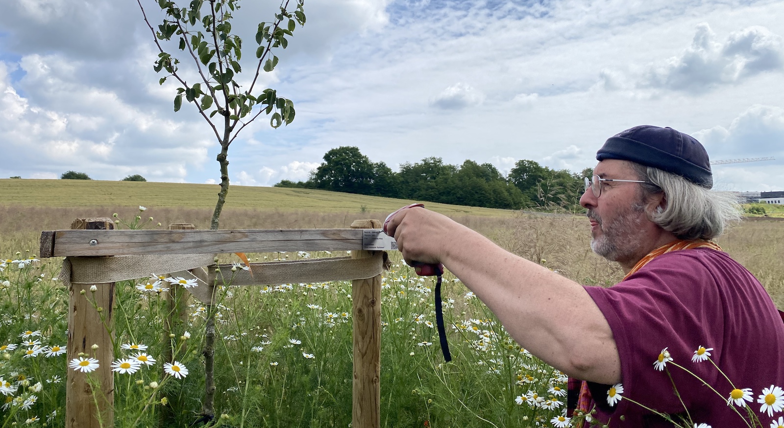 2024-06-23: Gerne übernimmt Jo die Montage des Baumschildes für seinen Namensvetter.