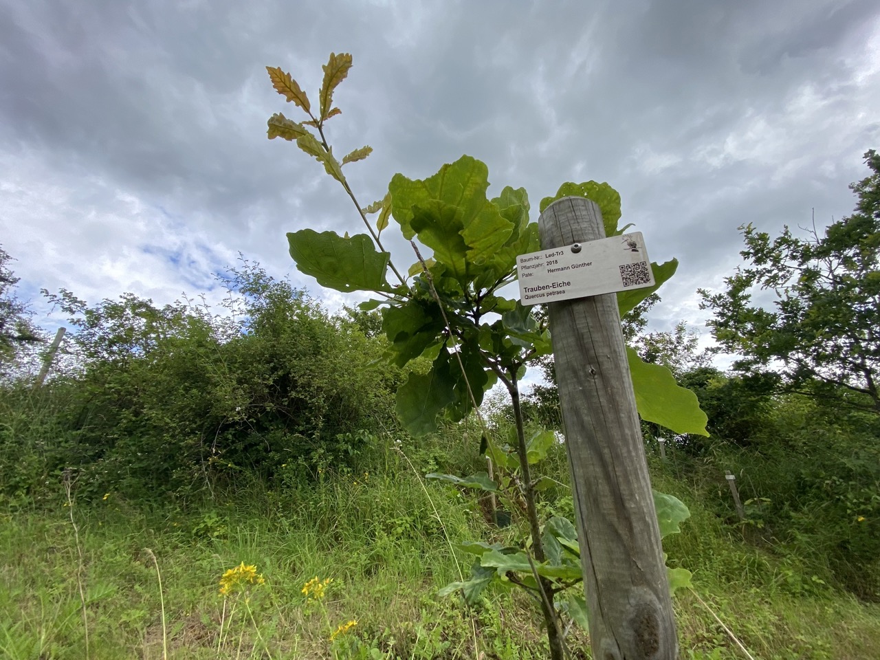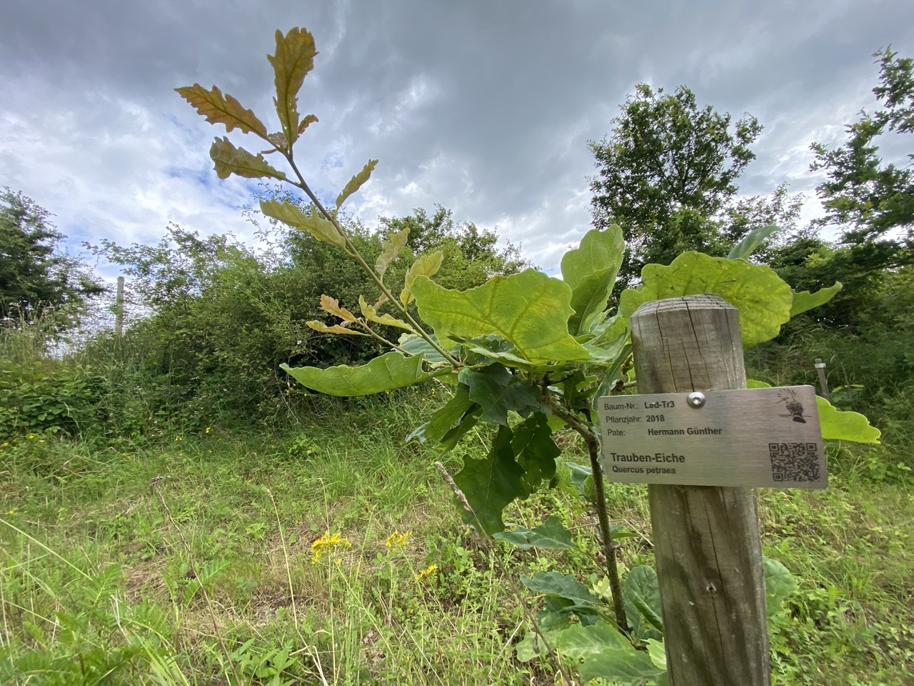 2018-11-30: Baumpate beginnt mit der Erschließung des neuen Naturschutz-Projekts „Hirschkäfer-Lederhose“ und pflanzt die ersten Patenbäume: Trauben-Eichen.