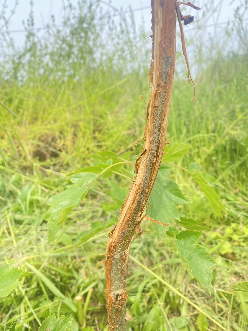 2024-05-26: Wie mir Richy berichtete, wurden beim Mähen des Wiesen-Labyrinths auf der Bienenweide einige verdächtige Langohren gesichtet, die für diese Fraßspuren verantwortlich sein könnten: