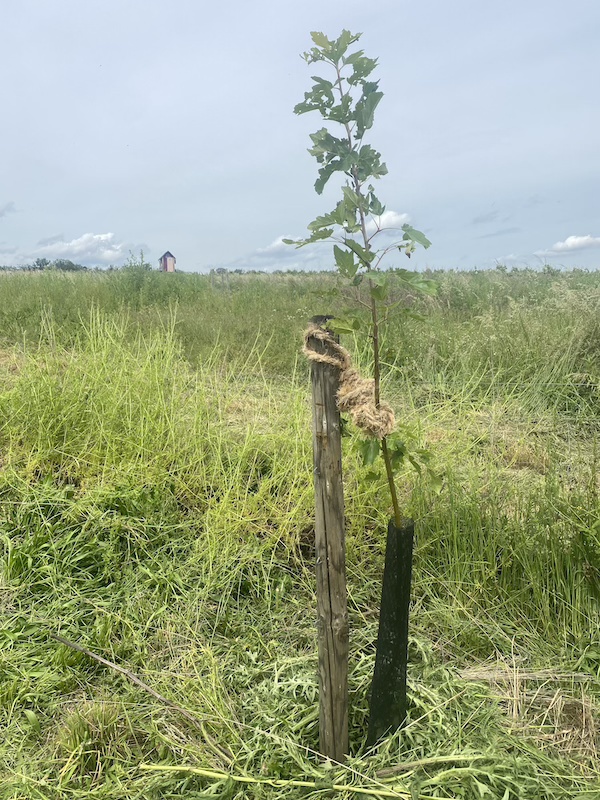 Das Bäumchen sieht aber dennoch sehr vital aus und die Manschette um den Stamm, wird gefräßige Langohren künftig fern halten.