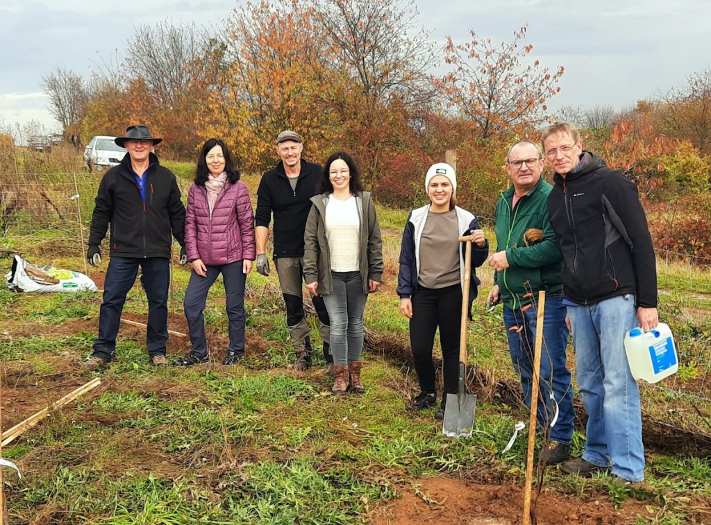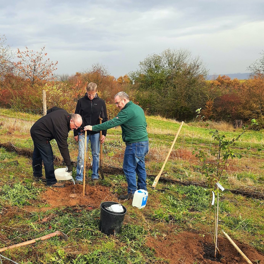 2021-10-31: Angerückt mit eigenem Gartenwerkzeug, bepflanzte die Bretzenheimer Hochzeitsgesellschaft in Windeseile ein komplettes „Gehege“, obwohl sie diesmal nicht mit vollständiger Mann-/Frauschaft antreten konnten. Martin suchte sich für seine Familie eine Felsenbirne aus, direkt am örtlichen Rundwanderweg gelegen – das wird später die Suche nach dem Patenbaum sicher vereinfachen 😉