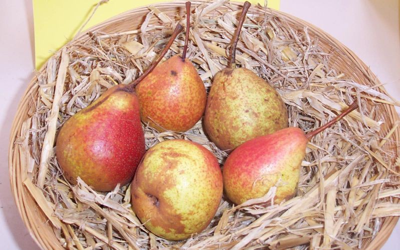 Da ansonsten relativ wenig über diese interessante Birne zu erfahren ist, kommen die Baumpaten wenigstens in den Genuss eines wirklich sehr schönen Fotos der Baumschule Ritthaler. Wie gesagt: Sehen lecker aus, sind aber dennoch „nur“ Mostbirnen 😉