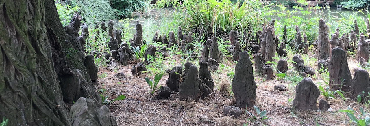 Die Echte Sumpfzypresse ist ein sommergrüner Baum und wirft im Herbst nicht nur ihre Nadelblätter ab, sondern sogar ganze Zweige. An Gewässerufern bildet sie sogenannte Atemknie aus, die ein schwammiges Gewebe enthalten, das die Durchlüftung der im Wasser stehenden Wurzeln fördert.