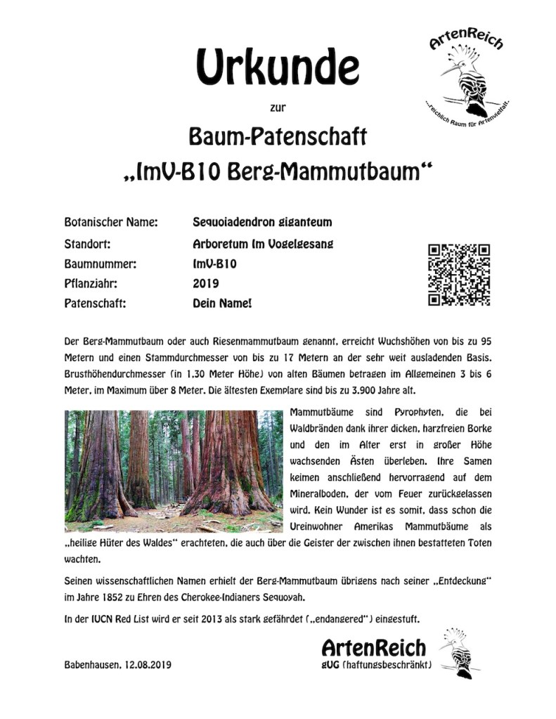 - Eigener Blog für Deinen Patenbaum im Internet, der Dich immer auf dem Laufenden hält.