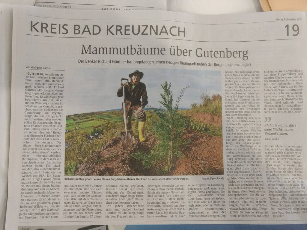 „Richard Günther hat begonnen, eines der größten Naturschutzprojekte rund um Gutenberg anzulegen: Fünf Hektar für seltene Bäume aus aller Welt.“