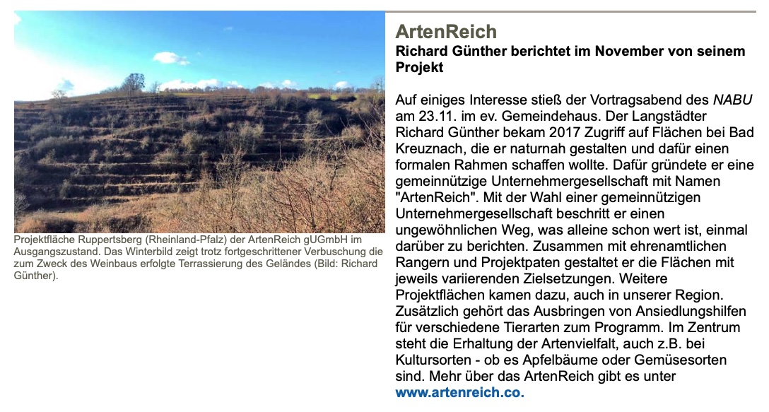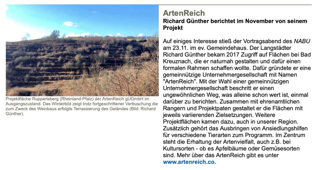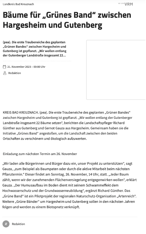 GrünesBand Naheland, ArtenReich-Pilotprojekt Gutenberg – Die Nack Pflanzaktion am 26. November 2023, 14:00 Uhr – Gernot Gauza