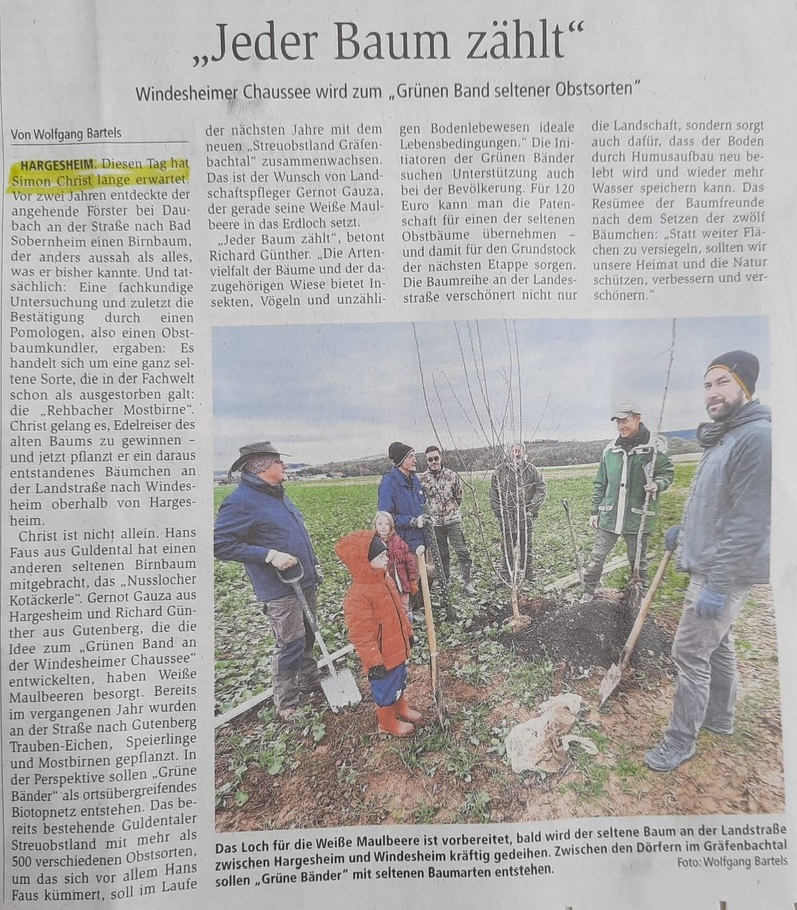 Jeder Baum zählt, Windesheimer Chaussee wird zum „Grünen Band seltener Obstsorten – Wolfgang Bartels